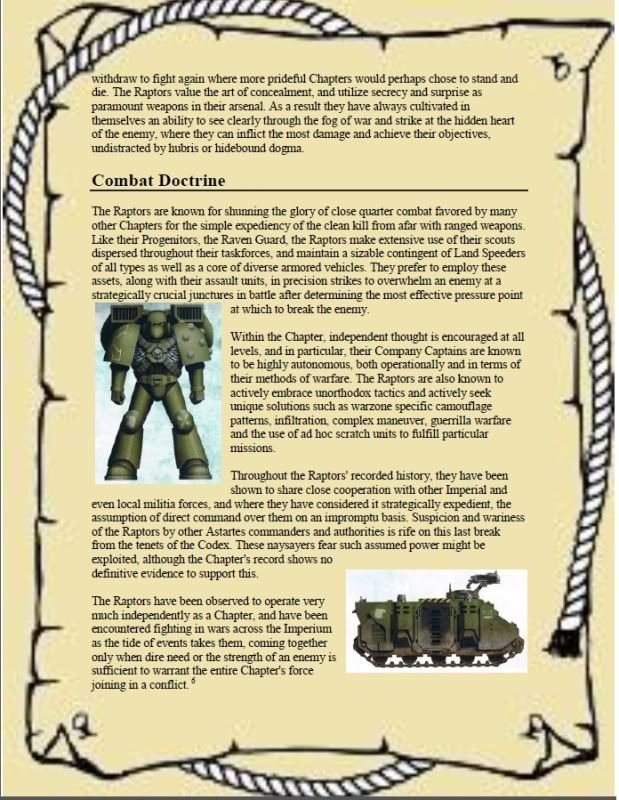 I was just having a look at the Raptors wiki page http://wh40k.lexicanum.com/wiki/Raptors_%28Chapter%29#.TpdZtnLPz0Q they use a lot of camo variants which could give you a (green) painting break for an Elite unit or two.
