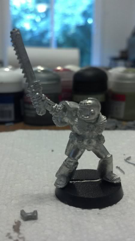 Second I have an old I believe out of production Sargent with a bionic arm and chain sword. I think I want to make him my first Sarge for a Sternguard Squad so I don't have to use the PF guy that comes with the finecast squad. Anyone else have any ideas of what to do with this guy?