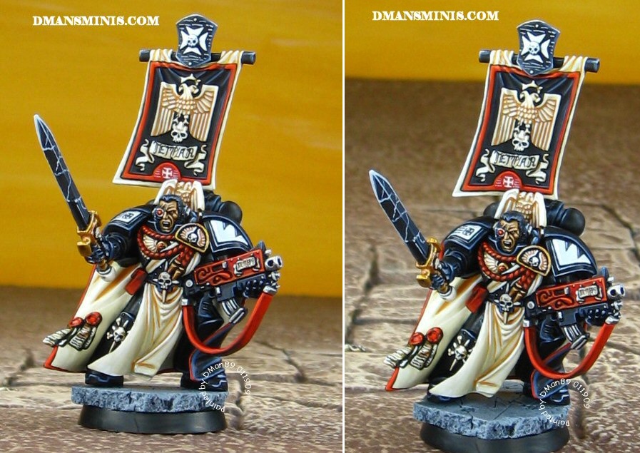 I love this mini. I liked the Imperial Fists one you did better (now I think that the back of the banner just seems blank without that nice scrollwork) but this is phenomenal.