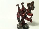 Looks like an okay start. I can't see highlights, shading, or anything of the sort. I'd probably do a wash of Devlan Mud or Badab Black over the model, then edge highlight with Red Gore. What do you have planned for the eyes?