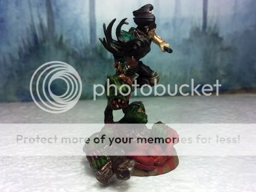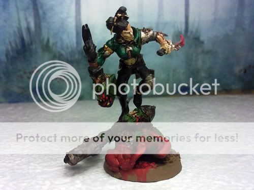 The cut is waaaaaaayyyyyyyy too clean on the Ork's head considering it's just been lopped off, you need to add a little more ragged flesh hanging around the joint. As for the blood, red paint does not good blood make.