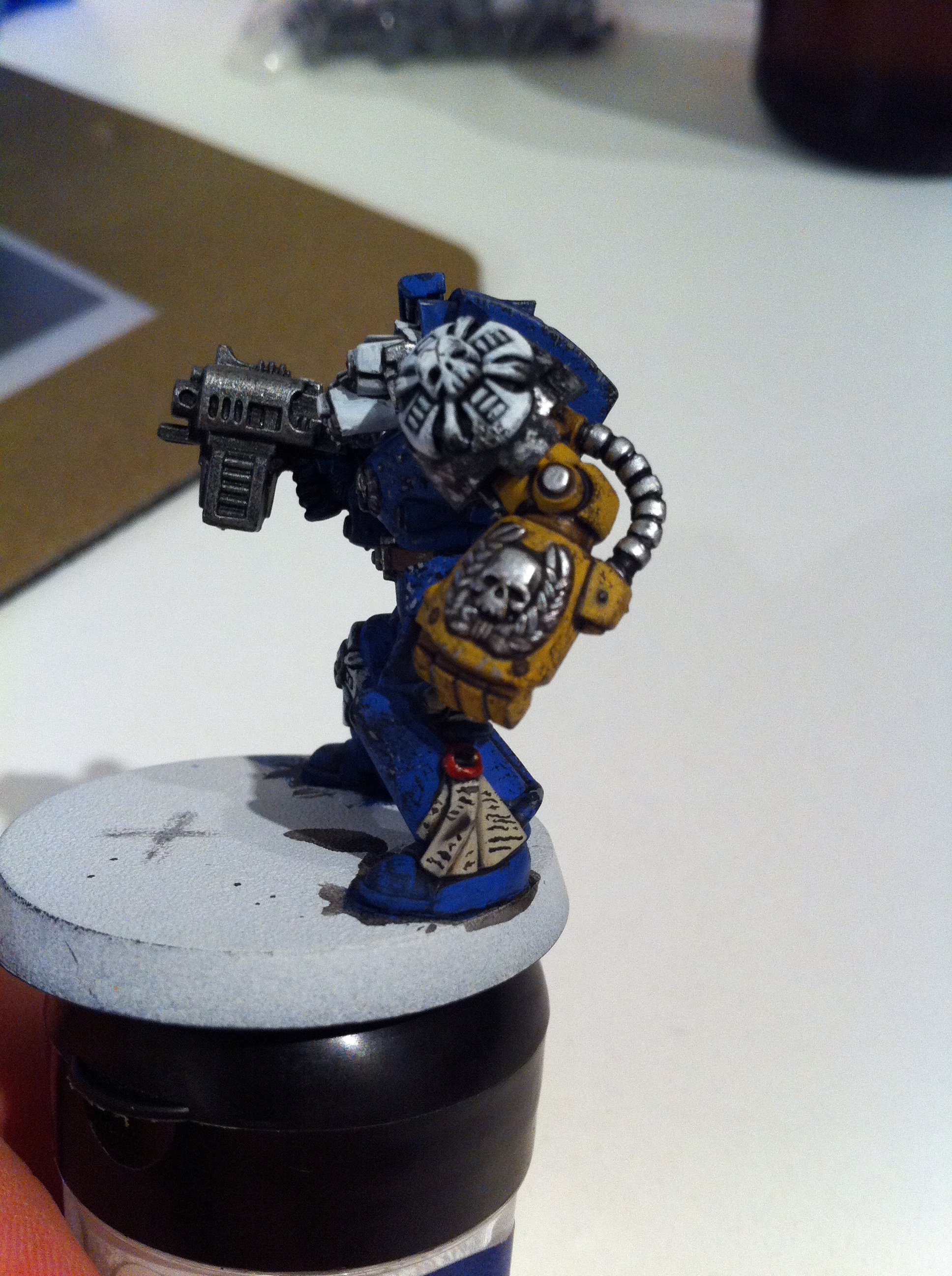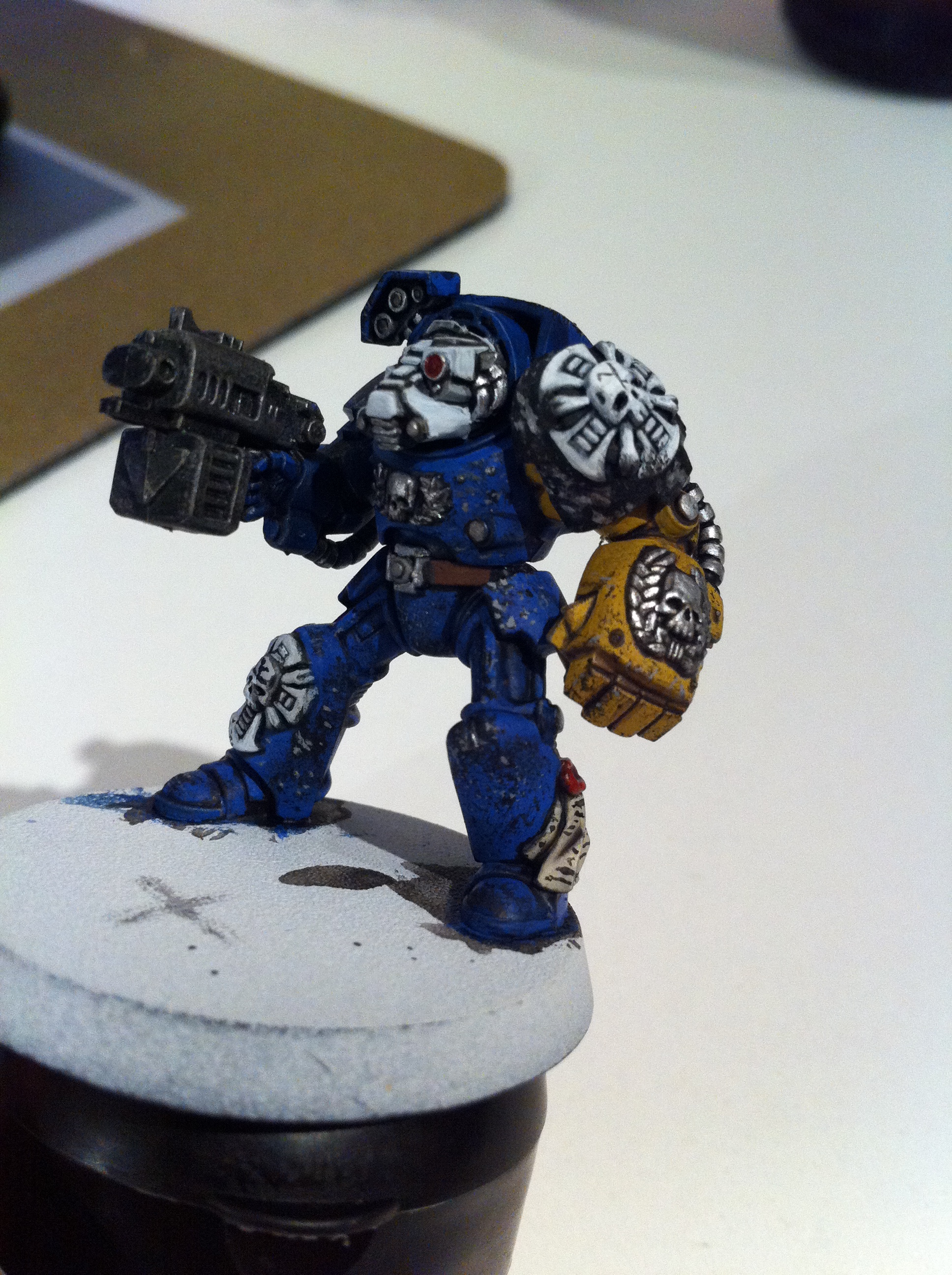 I dont like the yellow/white because it looks so unrealistic it looks like a painted mini and not like a real brushed metall armor hand or sth like that.