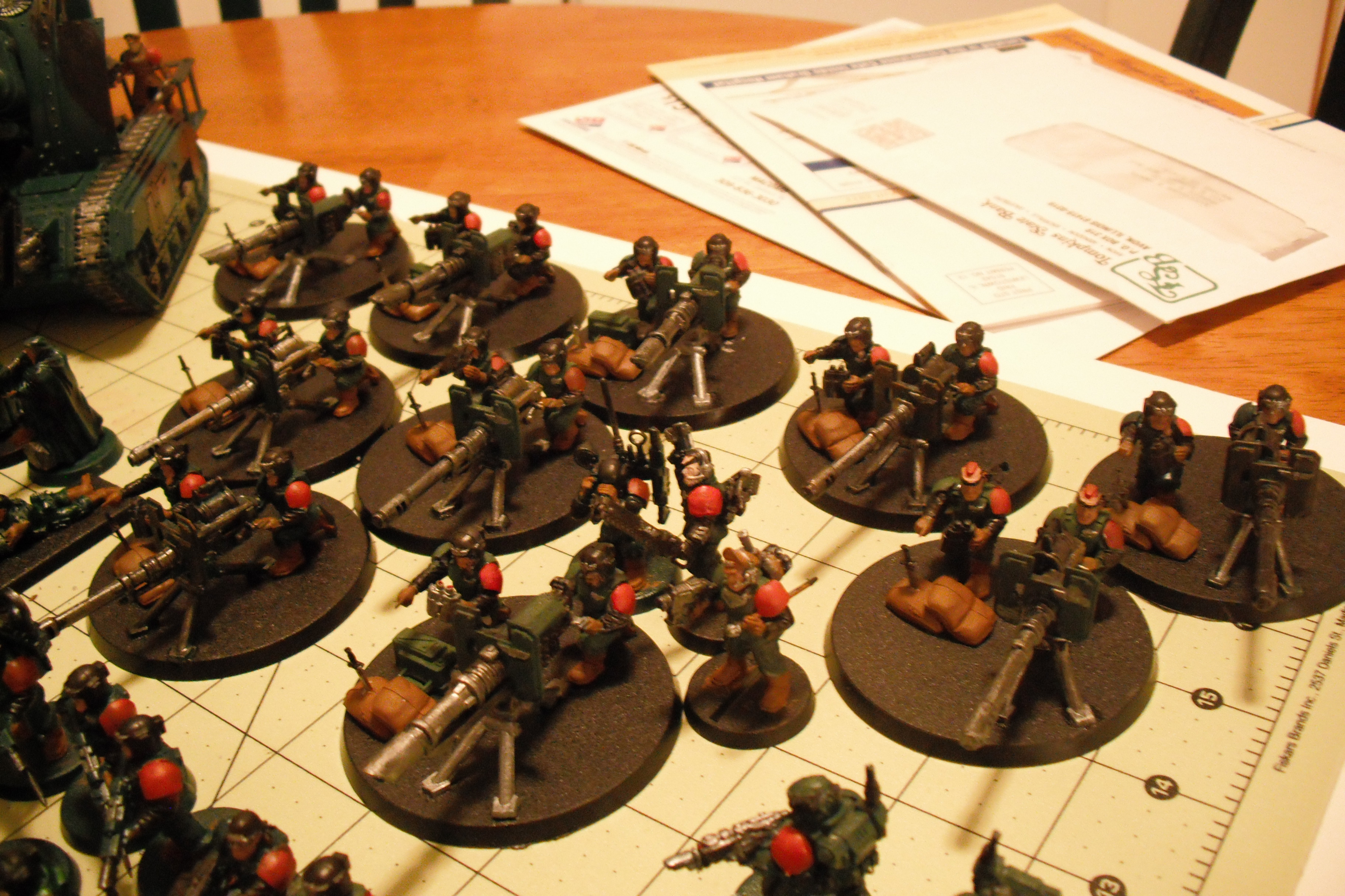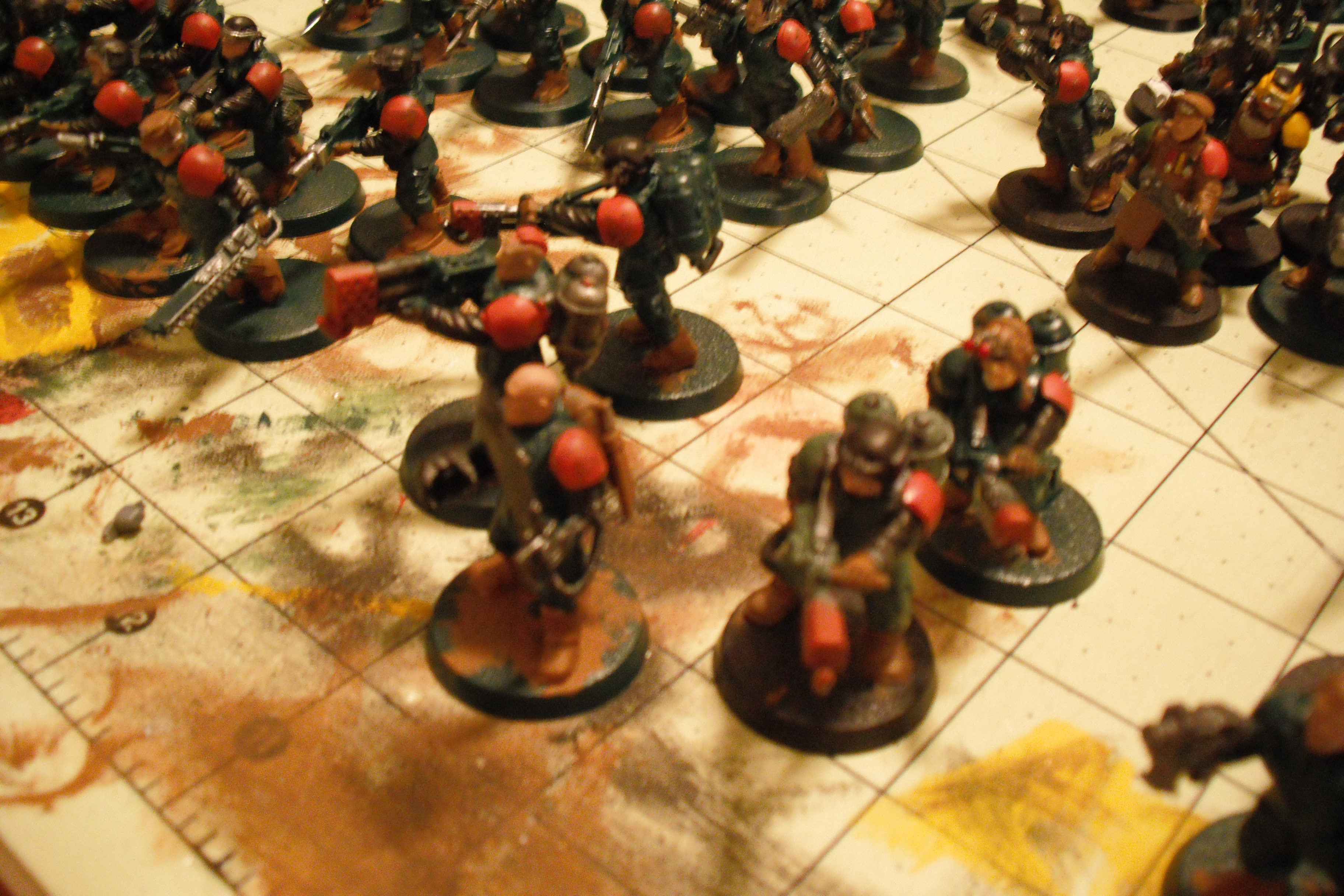Major: Davak “Tankbusta” Jasson got his nick name as a young guardsman when his lascannon squad was under heavy assult from chaos space marines, after oredering the squad to blast away the marines the squad was left with 3 marines who proceeded hack and slash their way through the guardsmen. Davak’s spotter held off one of the marines in time for Davak to get a two for one shot with his lascannon. His spotter was cut in two, and Davak managed to stab the marine in the face with his standard issue combat knife. After the melee subsided Davak looked to the ridge to see 3 chaos Predators charing his position. Davak dug in and went from one lascannon to the other destroying each tank with a single shot. He held his position alone for three more days until re-enforcements arrived to find a battered furious man surrounded by a score of las charred chaos marines and shells of seven chaos tanks.
