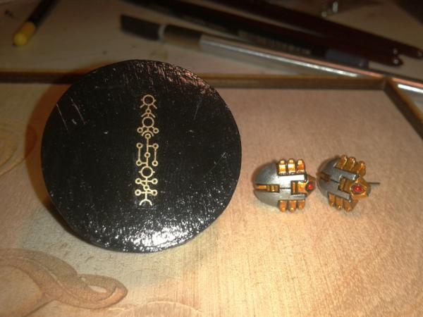 Subject: Necron Scarab Earrings! (Updated: with how they look on their new owner ;)