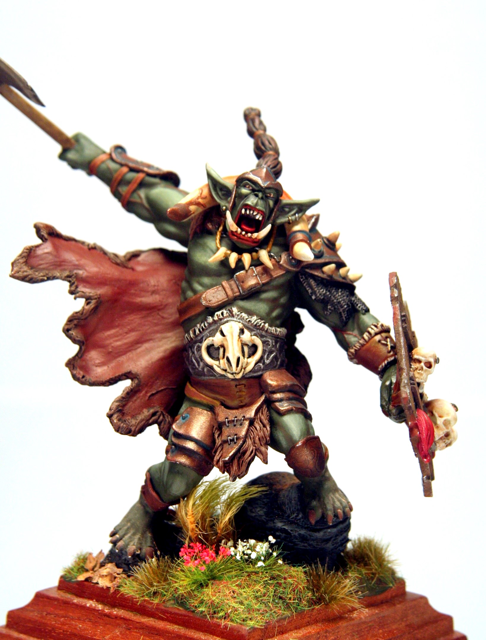 I disagree with Rogue Wolves about the skin, completely. I think the shading is quite natural, especially for a greenskin (for some reason, painters seem to love nothing more than ramping up the contrast on ork/orc skin, leading to a phenomenon I've dubbed "watermelon syndrome").