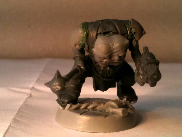 This one uses an ork body and the cojoined heads from the fantastic chaos mutations sprue. I am currently short of ork parts but plan to use a few more of these with the rest of the mutations sprue as they fit really well and a bit of bulk to the gang.