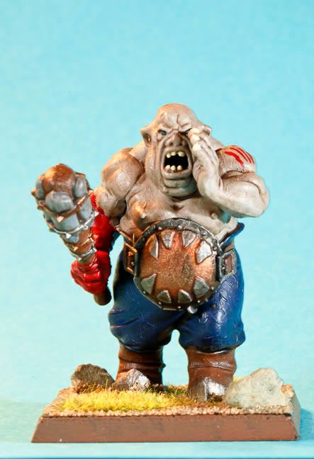 Yeah I primed them black and at the time had the GW starter hobby set so those were all the foundation paints that came in that since it was hard to get non foundation to cover the black primer. WHen I go to paint more ogres I will prime black then airbrush the entire model Dheneb Stone which will allow me to use brighter colors.
