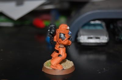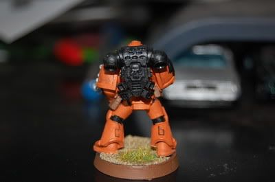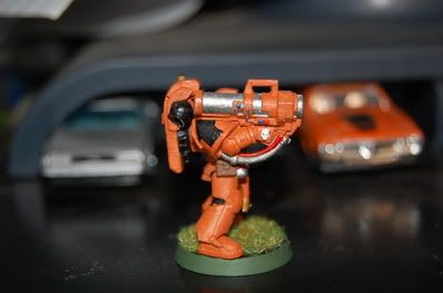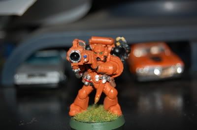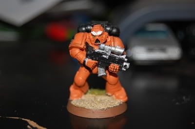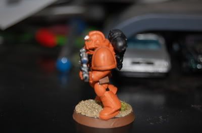 The bolter guy looks like a good start, but the missile launcher looks unfinished. The knife and belt buckle being the same orange as the armor just lets these details melt into the model and you kind of lose them. Pick them out in black, silver, gold, or what have you.