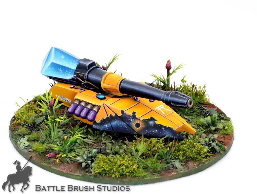 "Just to help you out on what it is, the cast was by Monolith Games, which was run by Steve Mussared. Steve was a Golden Demon winner who had connections with the studio and was bidding for the rights to sell 40k vehicles. This was a prototype of the Epic scale Eldar Deathstalker. He also did a Falcon. Ultimately, the rights went to Armorcast and Epicast in the US, and only a handful of these prototypes were made. [...]