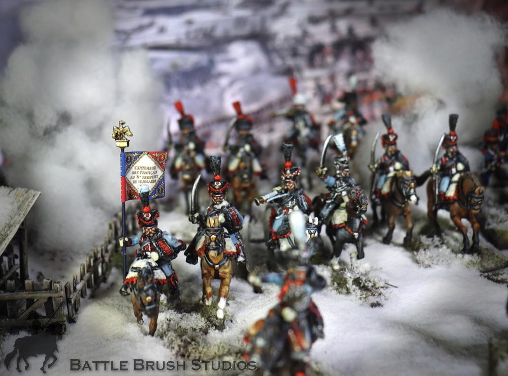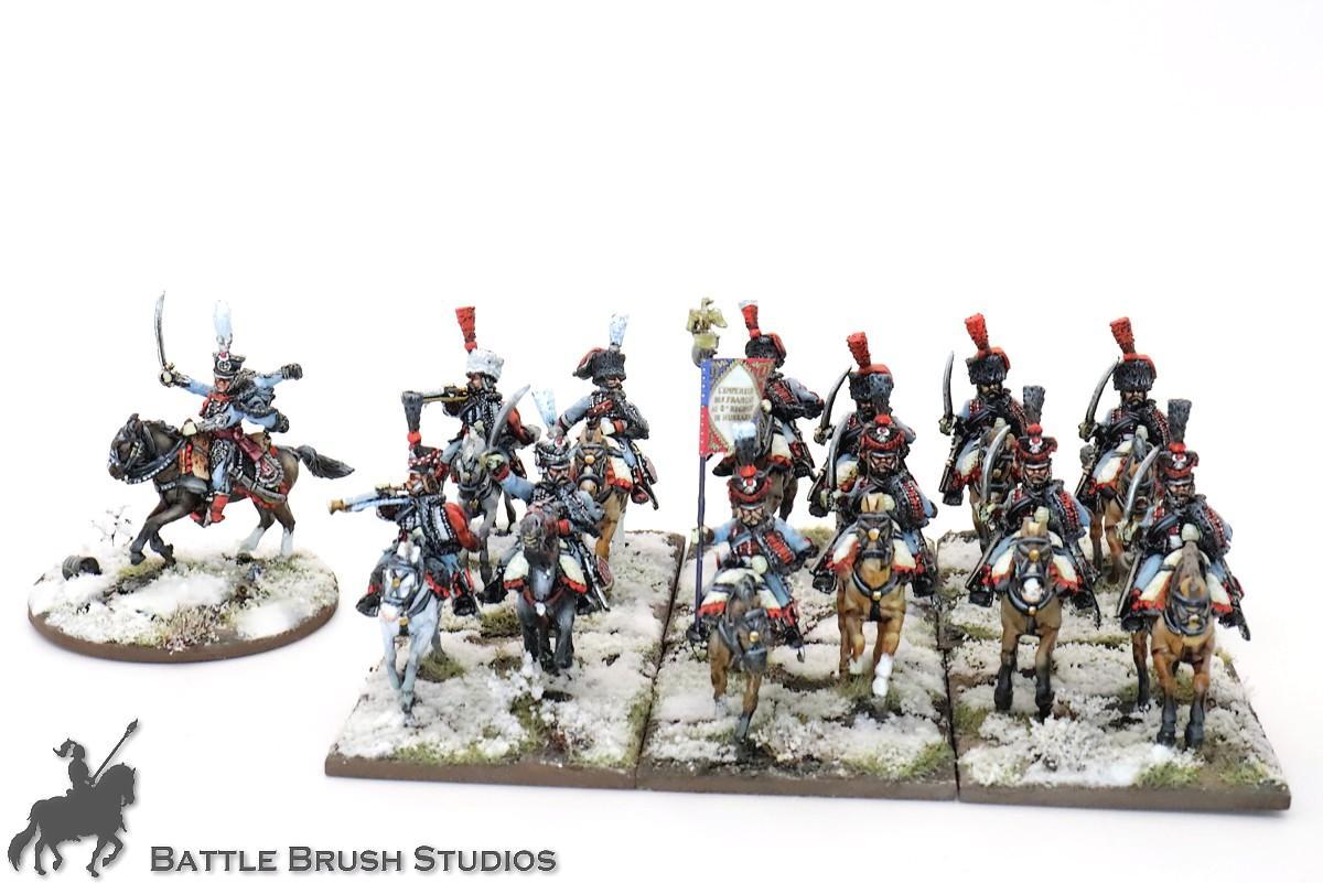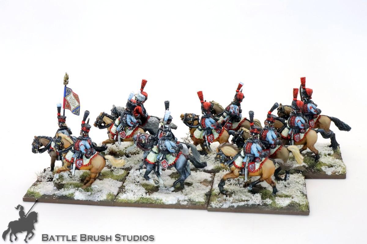 Here's three Dwarf Ironclads. Fun fact: I actually own Man O'War. Full boxed set, unfortunately all still unpunched and on sprue, so I never played it, and I kinda don't dare to. Which is a sorry state of things. Oh well. I'm busy trying to get stuff done. After all these many tiny projects I'm glad to get back to a larger chunk of 28mm Napoleonics again. At least a nice big unit of light infantry and hussars, as well as artillery train wagons. All for the battle of Eylau 1807. Snow bases!