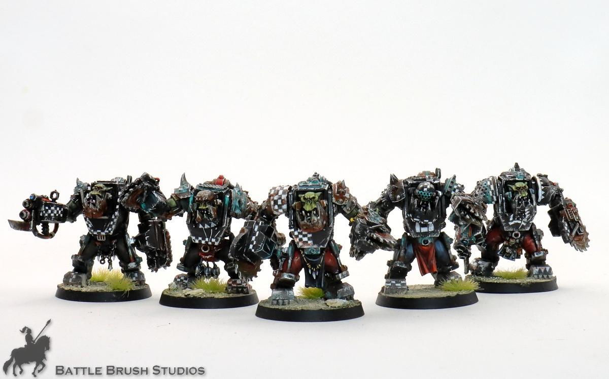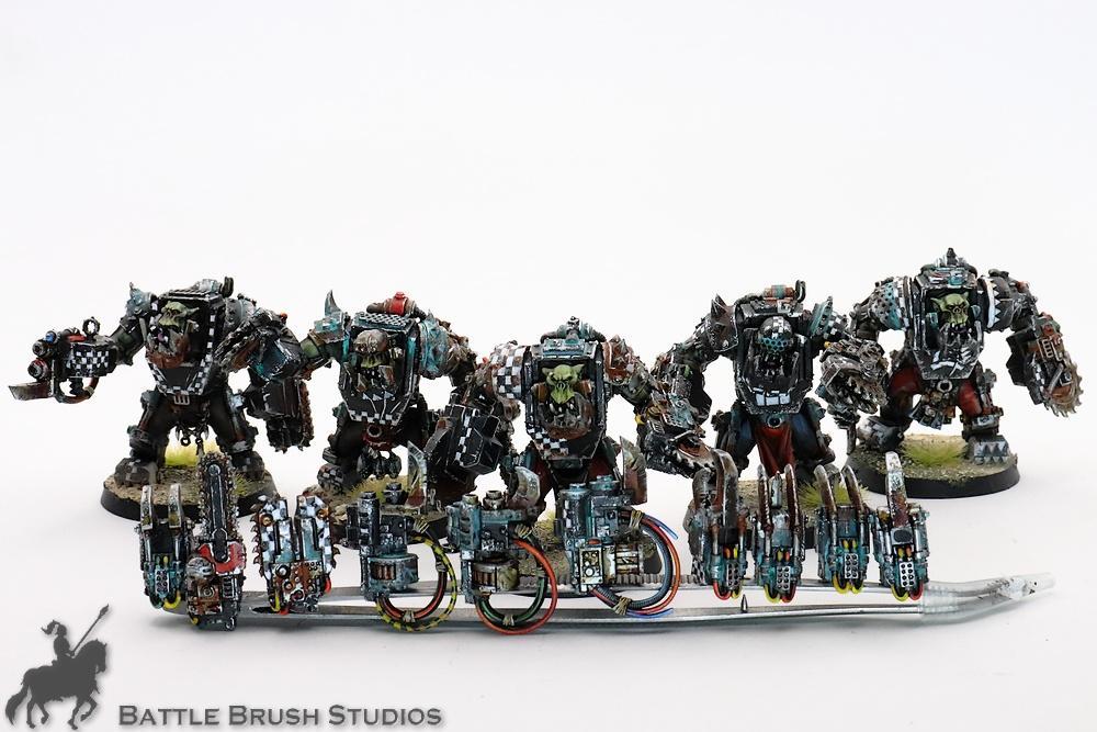 Nobz in Mega Armour. They're the biggest and the meanest of the big and the mean, so I limited red to a minimum and mainly stuck to black and white/metal. Also with plenty of magnetized weapon options:
