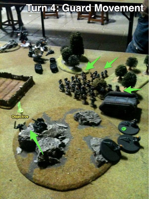 The Guard on the right flank continue to keep their eyes on the objectives (and the encroaching Orks no doubt!)