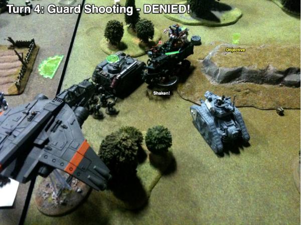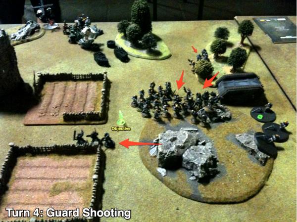 The rest of the Guard shooting on the left flank is similarly unspectacular - resulting in a shaken Trukk and another dead Meganob.