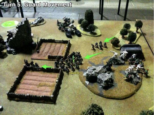 The objective in sight (and the Orks on the horizon), the right flank Guard move in.