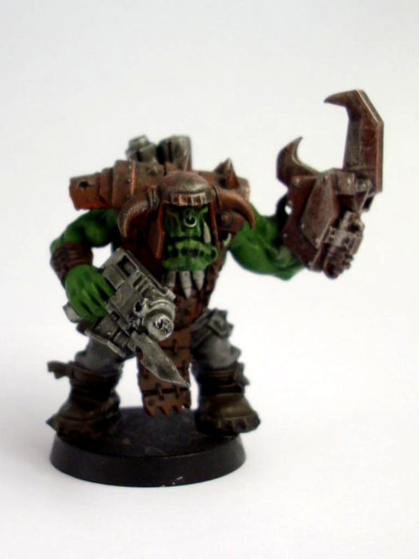 My only criticism would be to add in a little more contrast to the models. They seem very... rusty and not much else. First picture, for example, the ammo for his shoota could do with contrast rather than all silver.