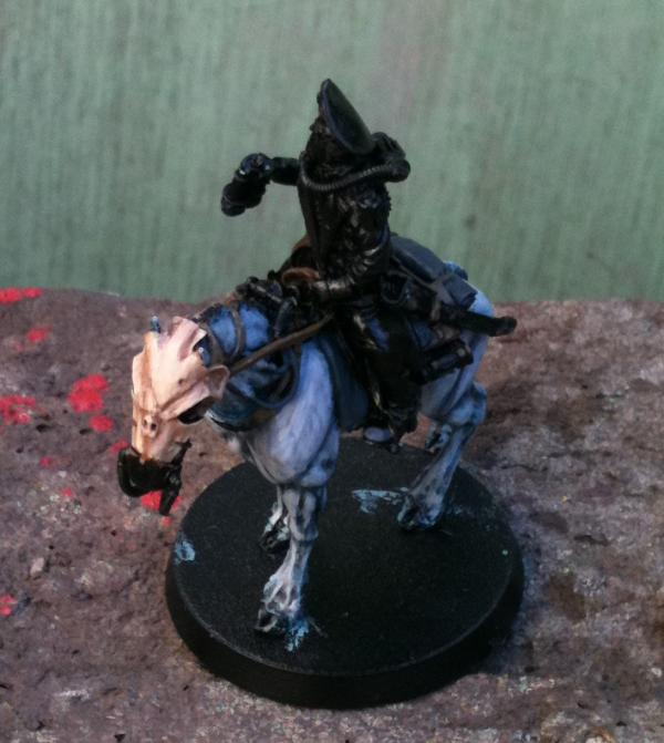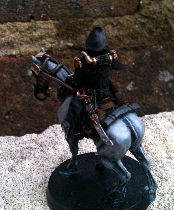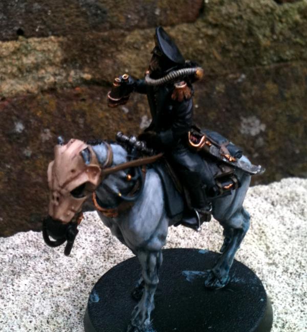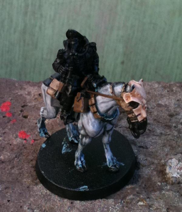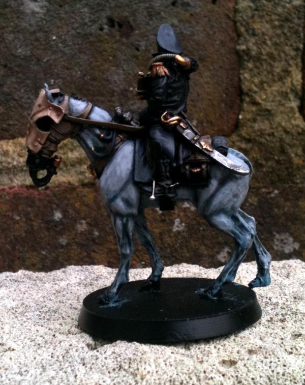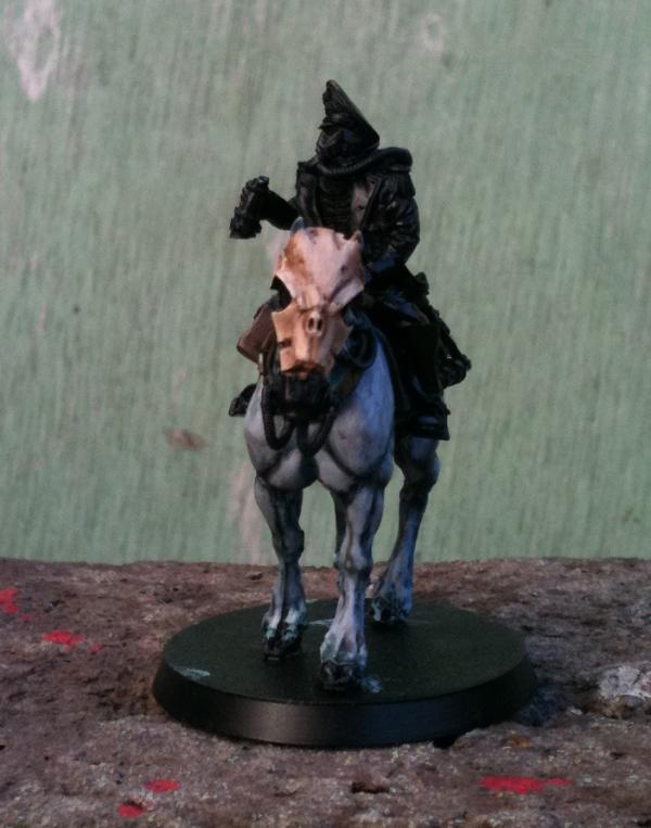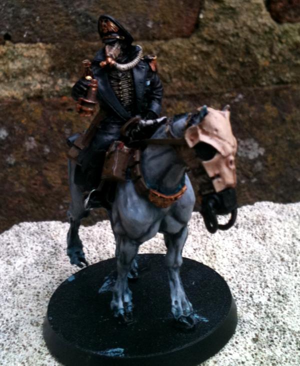 *At time of writing the Commissar is nearly finished. I tidied up the horse a bit here & there, finished the skull armour and have painted the Commissar himself. Just needs details & metalwork added. All of the Death Riders will be based when the unit as a whole (when I have all 10) have been painted.