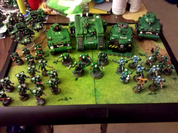 made up a mechanized blood angels list for a tournament tomorrow! Here's the picture of the army on display, looks pretty cool