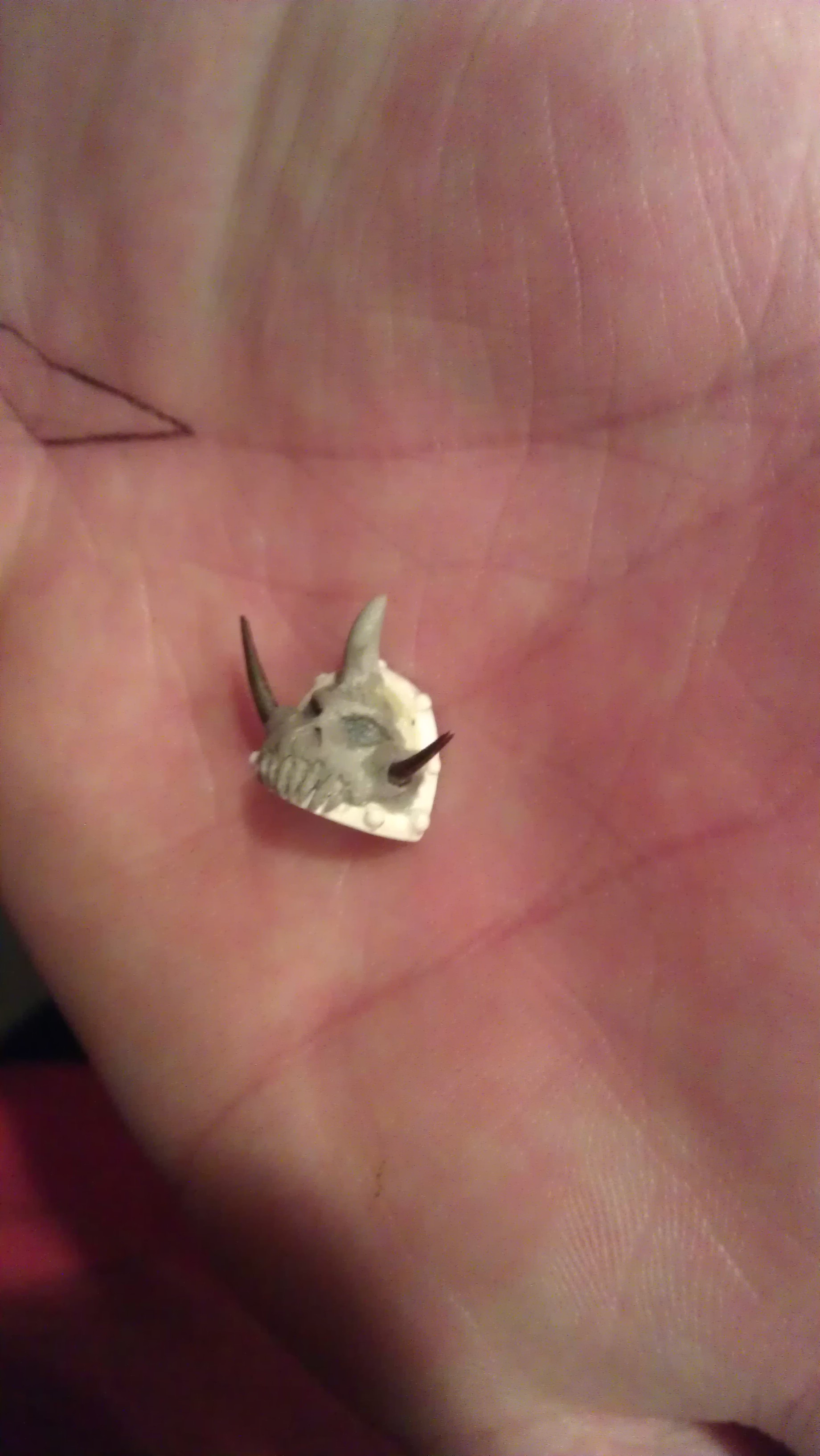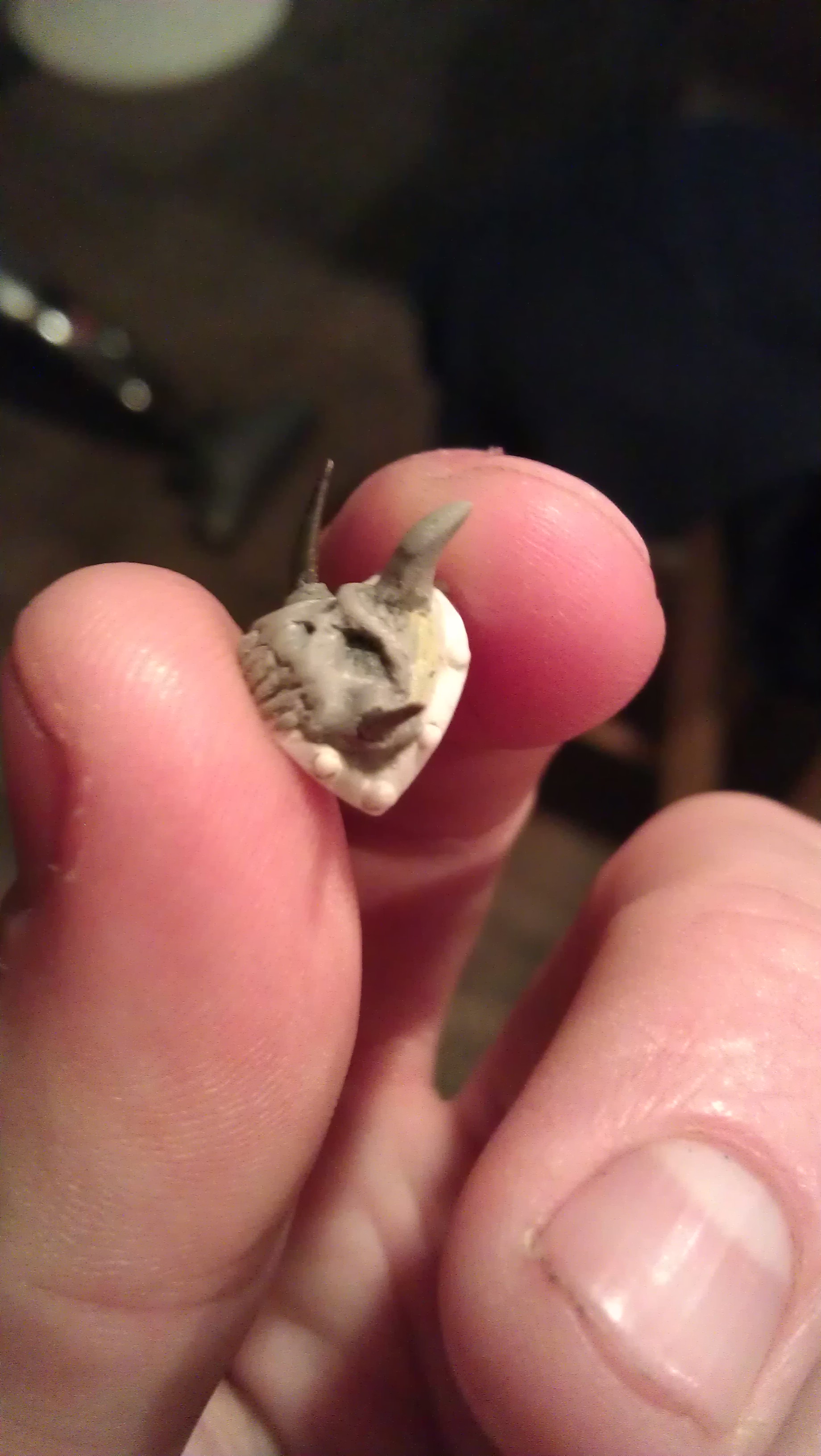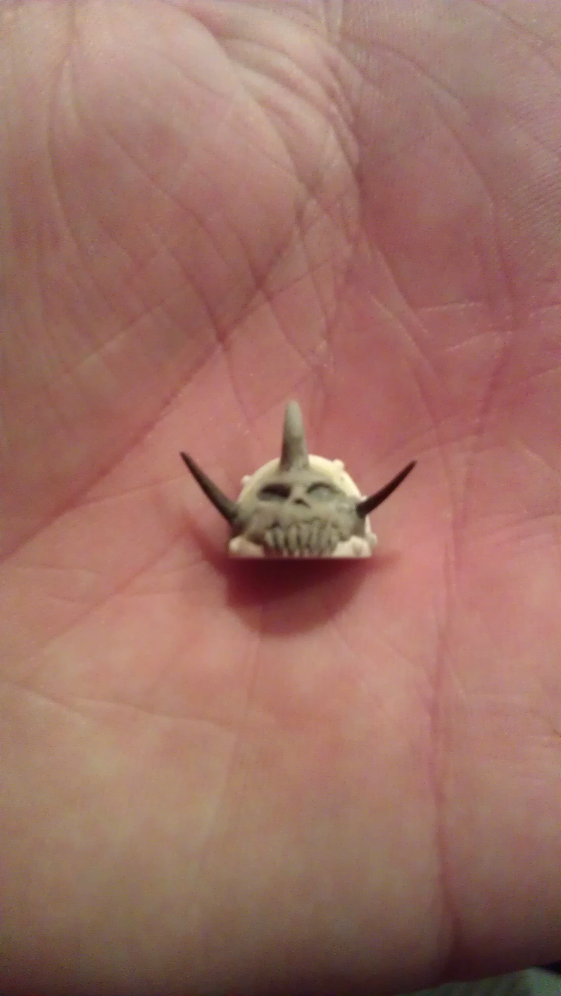 thanks for compliment! The cracks are filled, it just looks like a gap because I used a dark gap fill and its not exactly a great resolution. I sculpted the skull onto it yes, I liked the idea of a single horn. It is still very much a WIP and I've added some rivets around the pad and a spike on either side of the skull tonight. I'll add updated pics tomorrow.