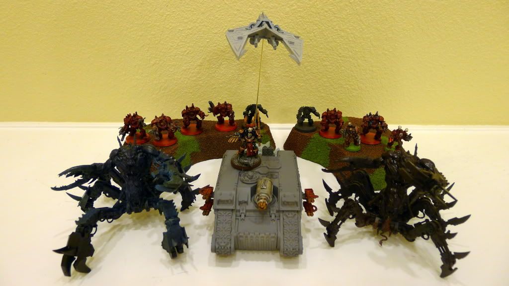 Good battle report, jy2. For a while, you and your opponent were toe to toe in kill points. Gargantuan daemon lords are super effective against vehicles and walkers. Had you used Tetrahedron of Darkness formation, this game would have been definitely one-sided.