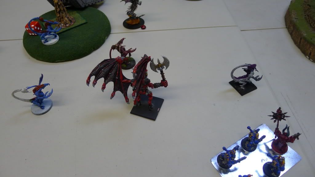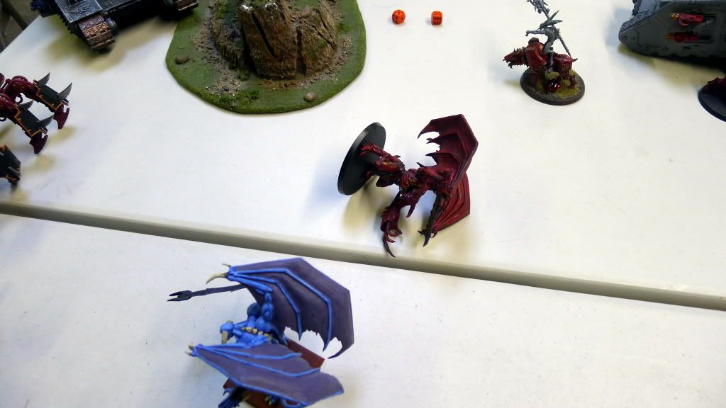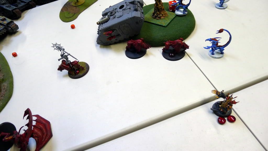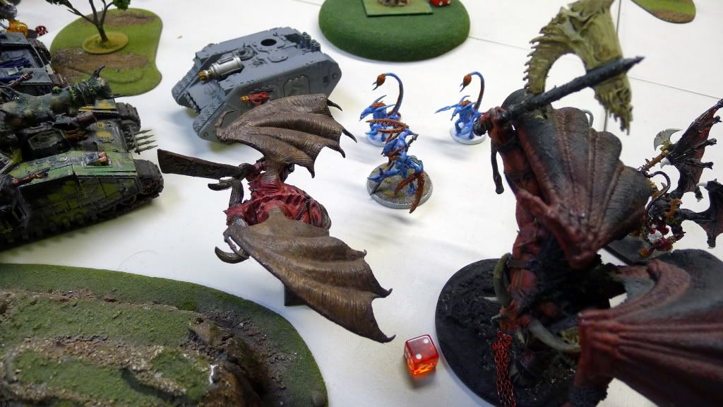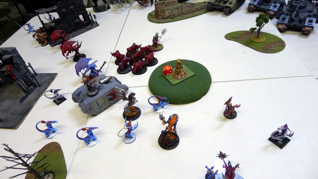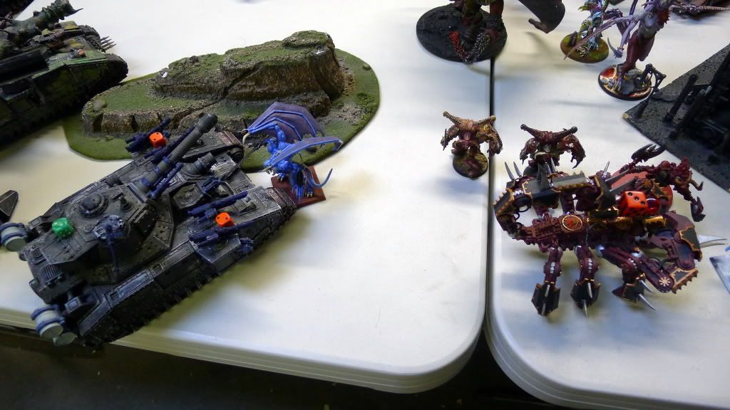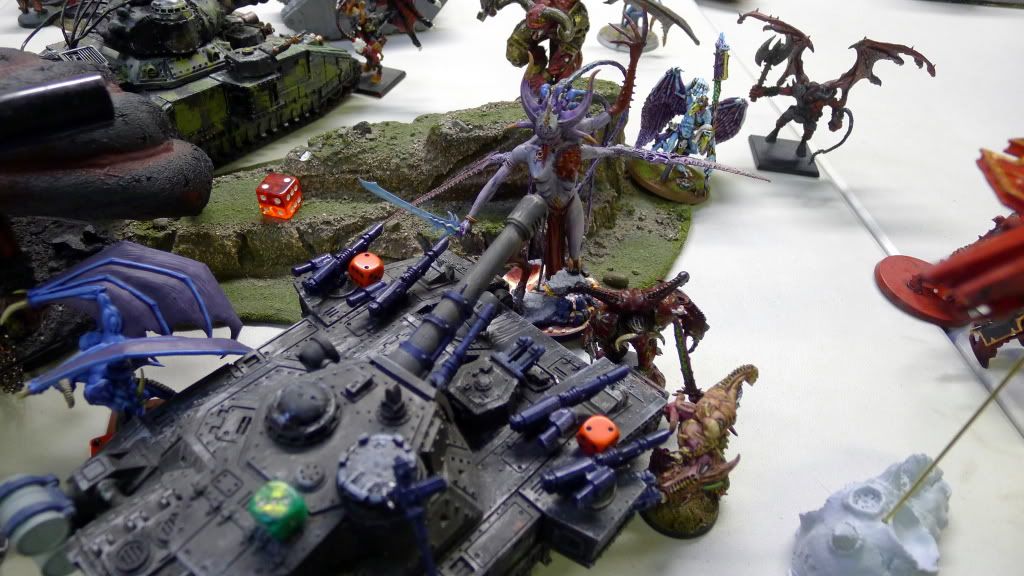 Zaraknyel and both Slaanesh DP's charge another baneblade (the only one they could reach).