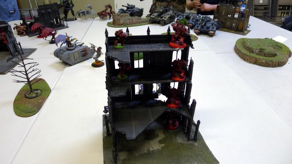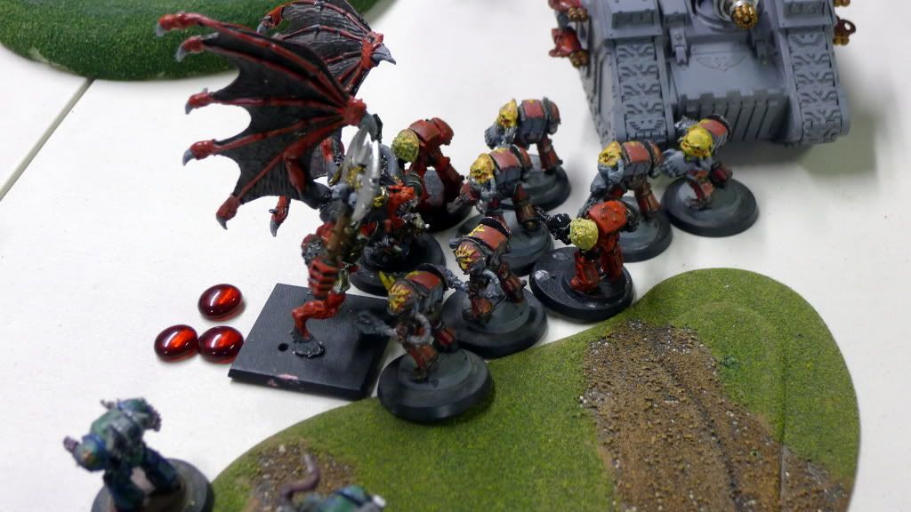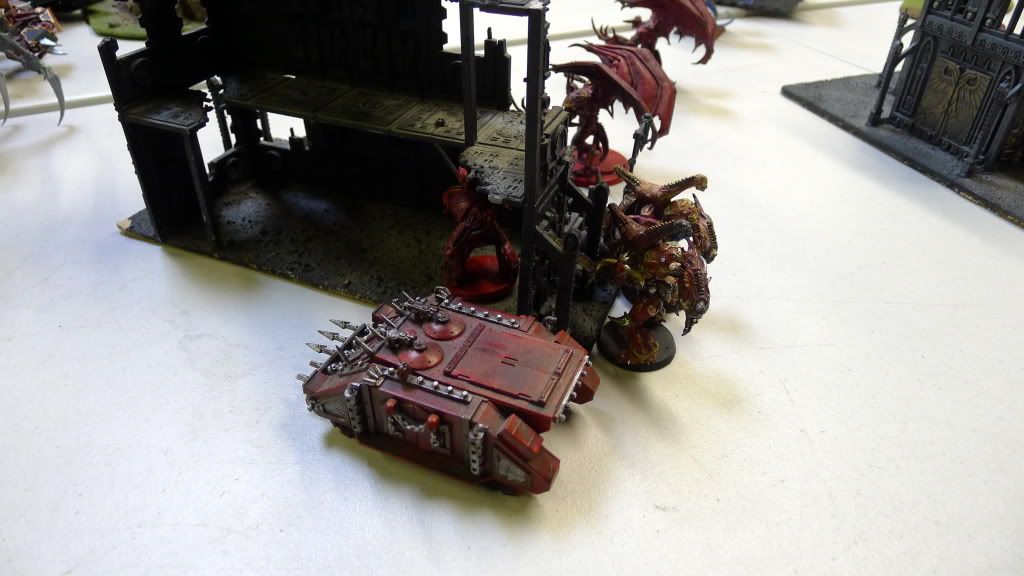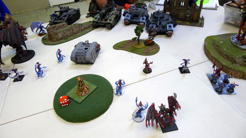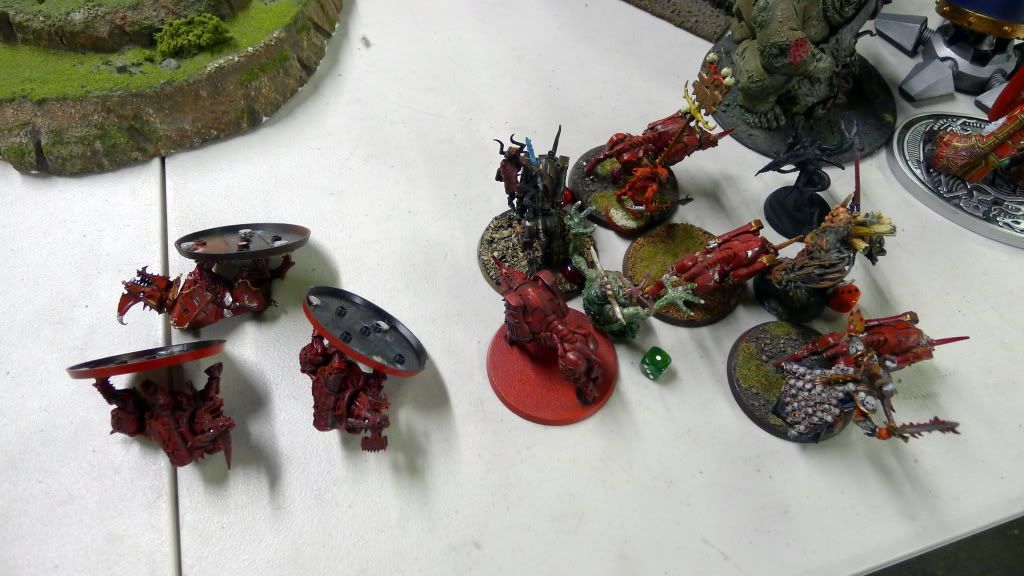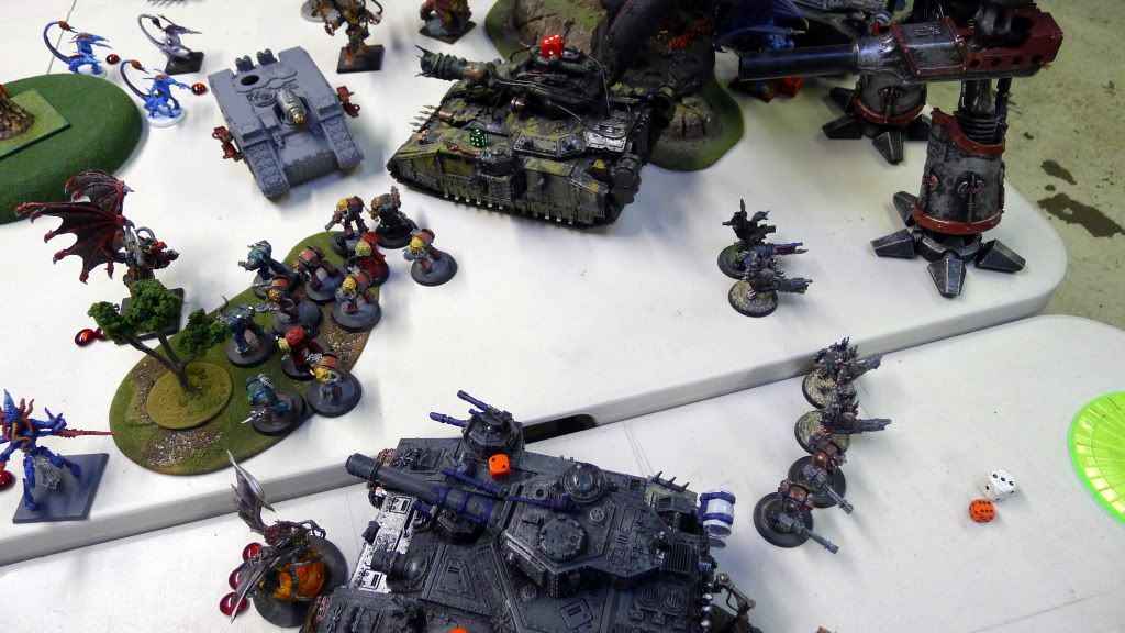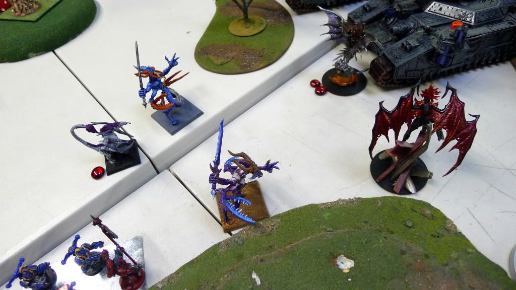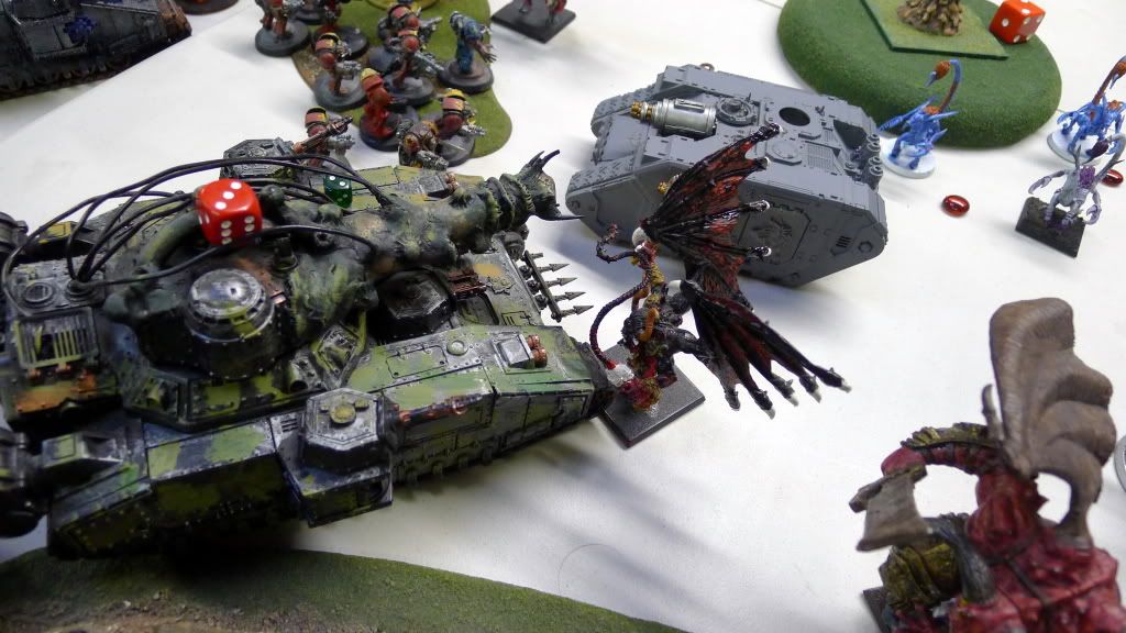 Zaraknyel and both Slaanesh DP's charge another baneblade (the only one they could reach).