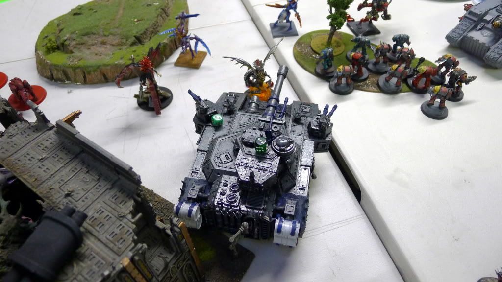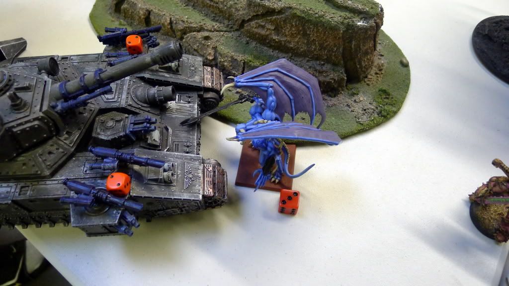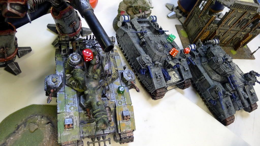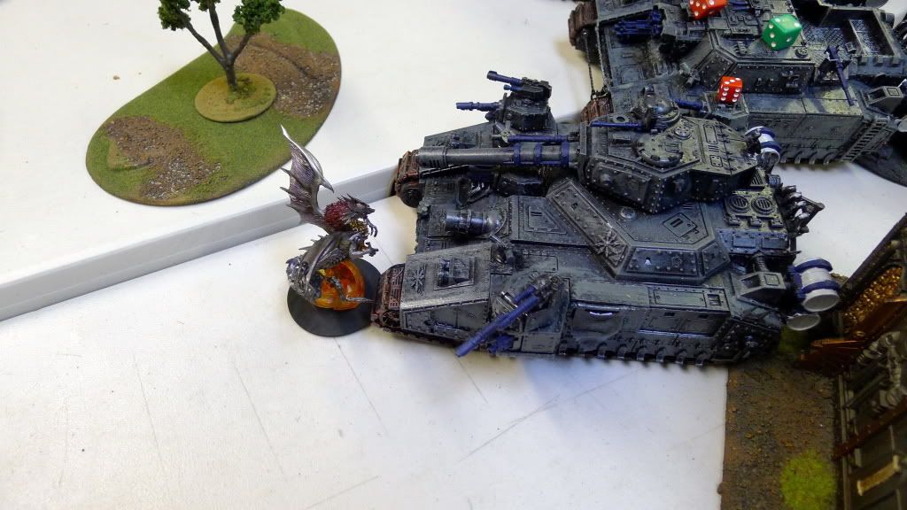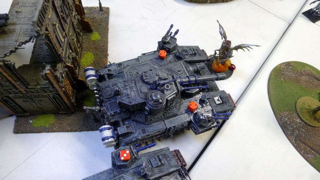 My last Tzeentch DP tears off the main gun and shakes a lascannon from the last baneblade.