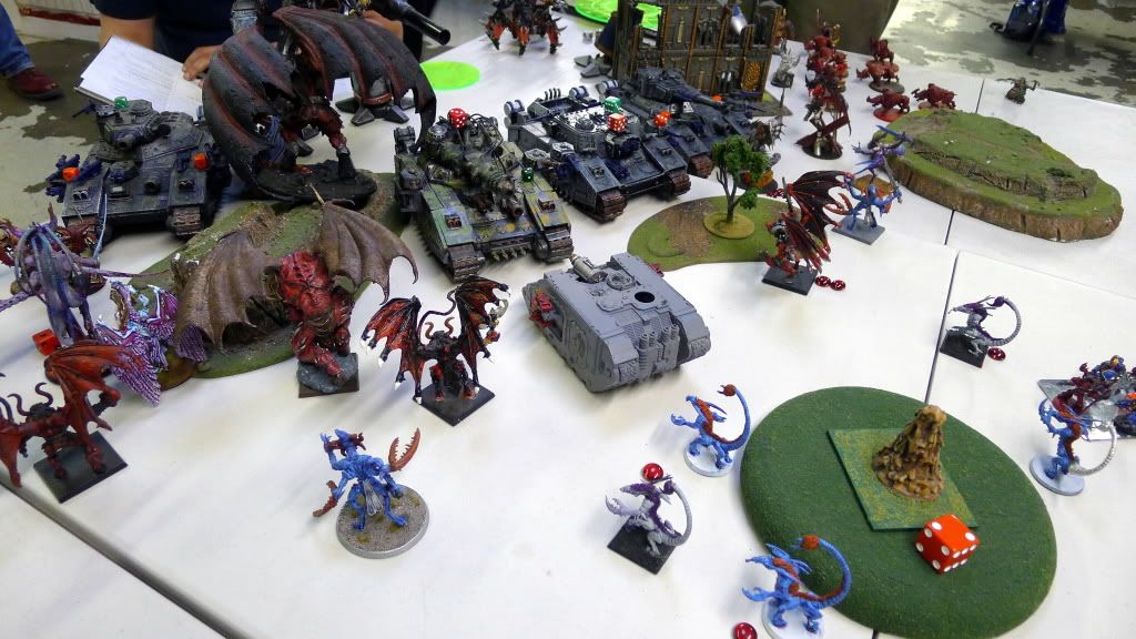 SabrX wrote:Good battle report, jy2. For a while, you and your opponent were toe to toe in kill points. Gargantuan daemon lords are super effective against vehicles and walkers. Had you used Tetrahedron of Darkness formation, this game would have been definitely one-sided.