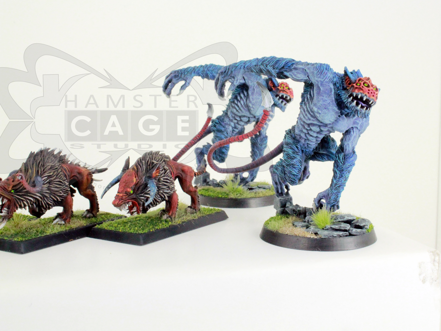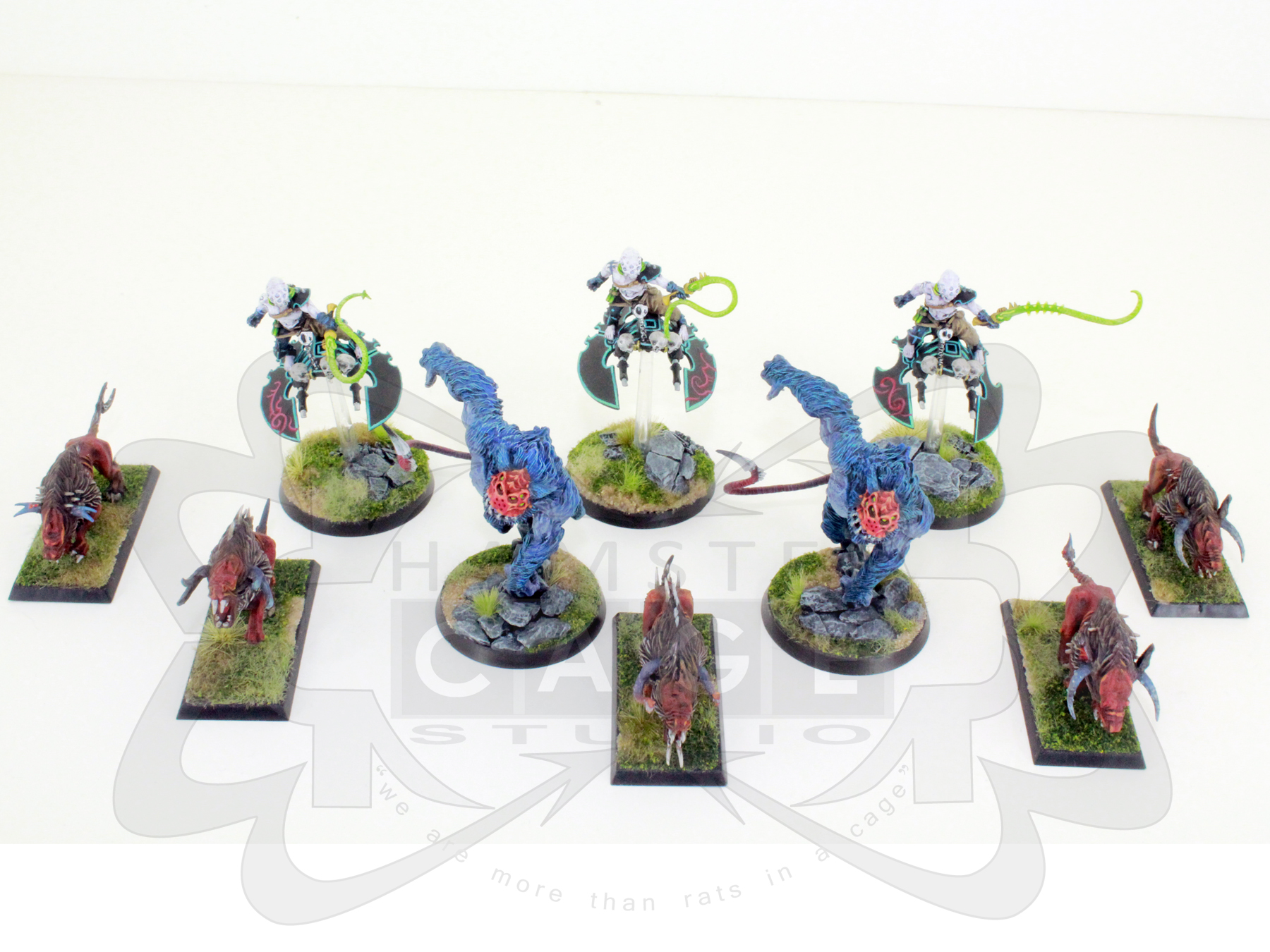 My Wife has painted up some Dark Eldar Beastmasters and Beast. our parent site is here http://40kpainting4hire.blogspot.com/