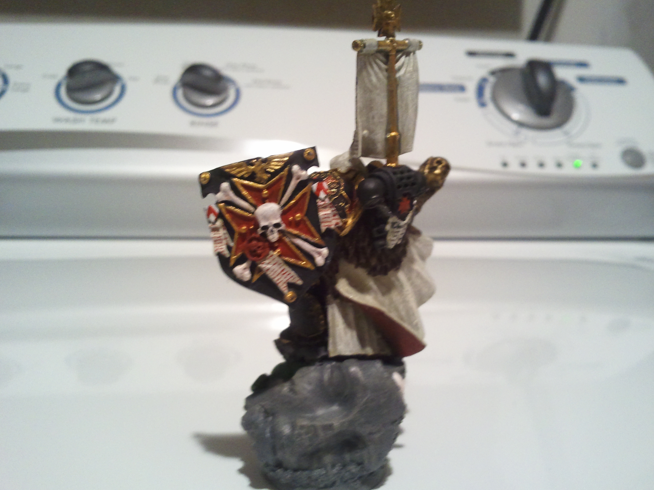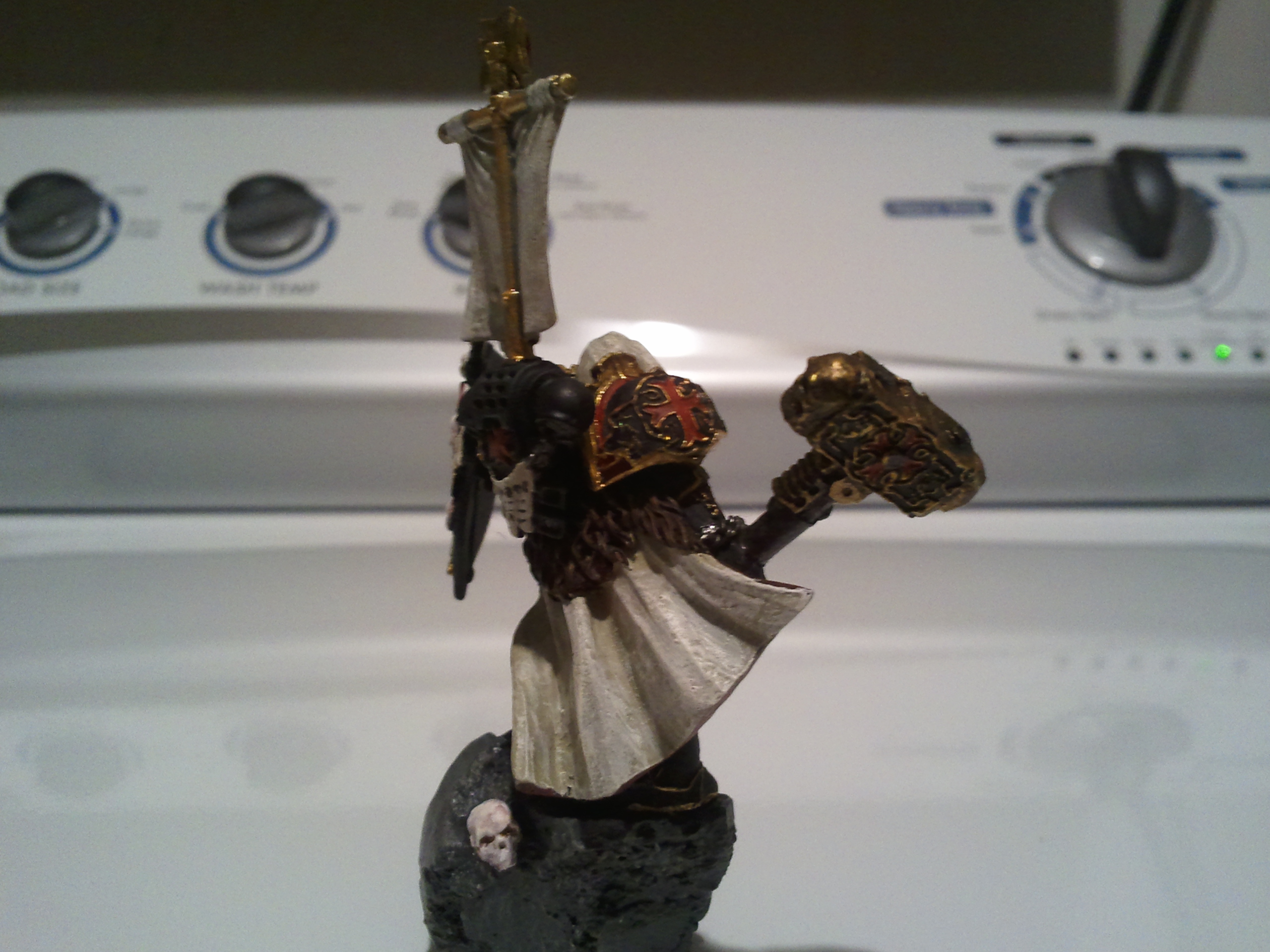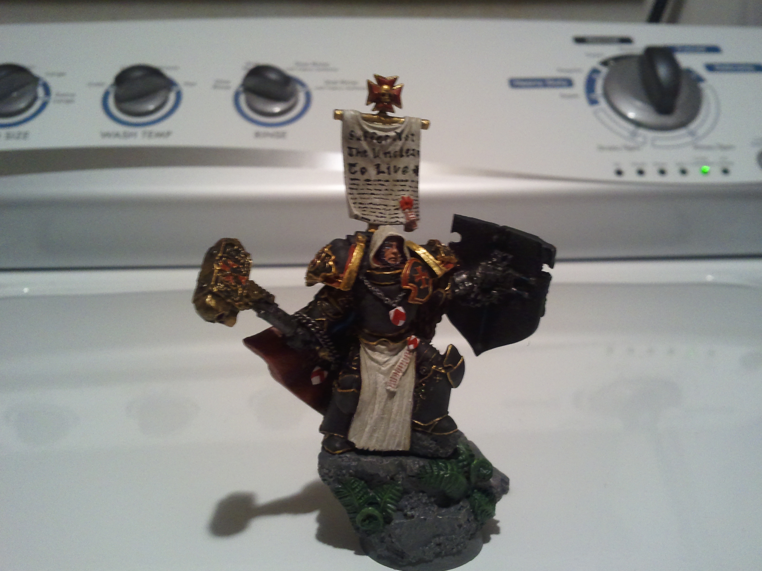 The majority is a Scibor miniature, the Shield is from Forgeworld, the banner and the backpack are from GW, the chain on the hammer was from a bracelet.