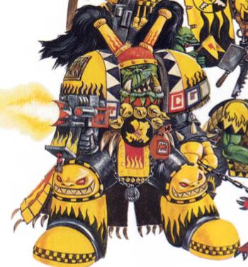 Some of the bands in his armor look roman influenced, but all the roman figs I know would be too weedy for use on orks...again, greenstuff looks to be the answer