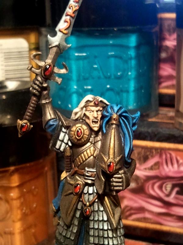 Boltgun, with a drybrush of chainmail and then a couple of further shades and highlights, will suffice for the metal. For the skin I would look at Tallarn Flesh, shades with thinned down Dark Flesh (more natural shading than Devlan Mud), and highlight up to Elf Flesh. White cloth I would start with Astronomican Grey, shade with Astro + Codex/Chaos Black, then highlight up to Skull White.
