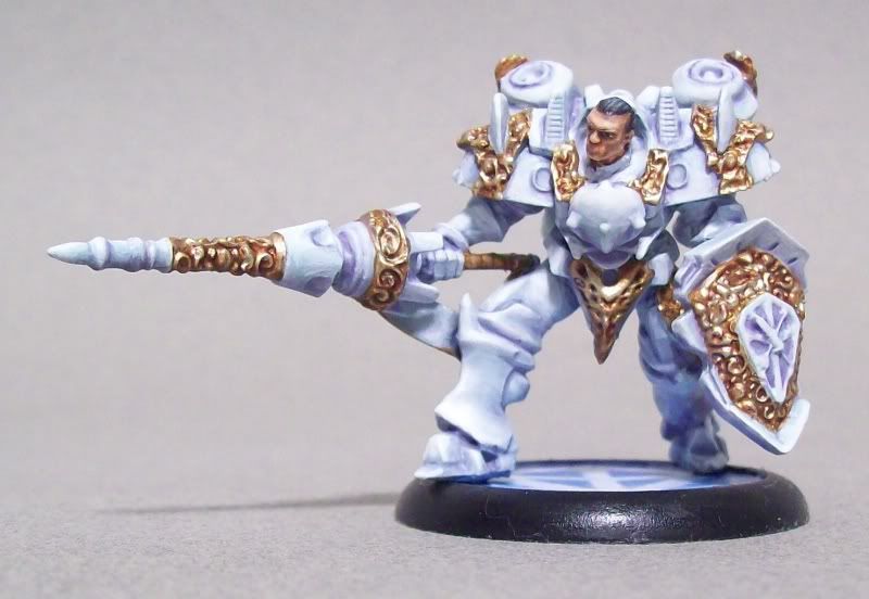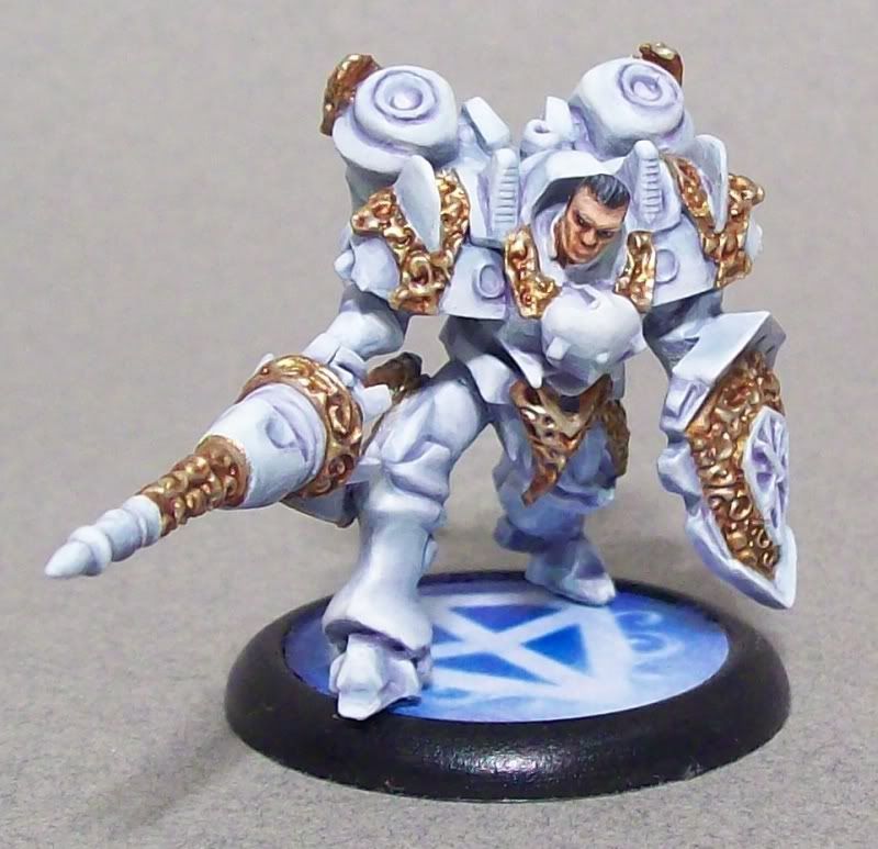 Relic Knights Navarre Hauser. The white was an experiment that was a resounding success, it was shaded with just three colors and some careful mixing.