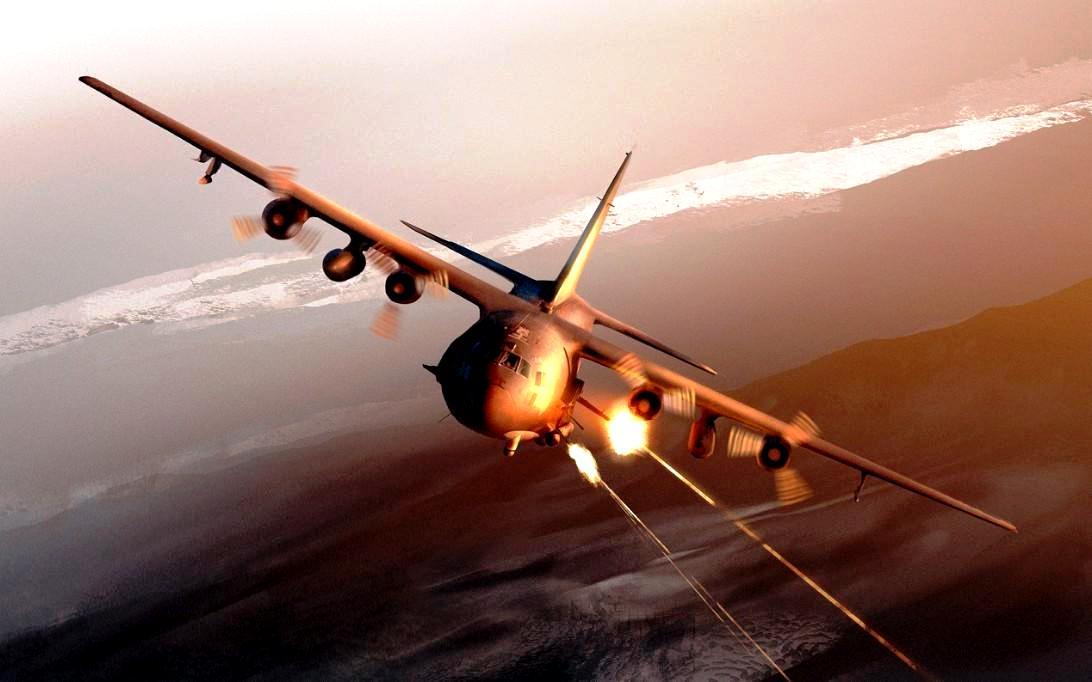 Currently, there is nothing that is equivalent to the AC-130 gunship, but now that you have mentioned this I'm going to be figuring out ways to convert a Valk kit into gunship. THEN figure out rules for it. I imagine a 105mm howitzer would probably be a battle cannon. then a autocannon, and finally a punisher gatling gun. That is what I would imagine this would be like. Points I'd say this would have to be an apocalypse unit probably around 230 points.