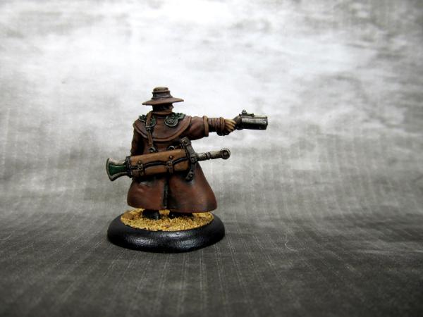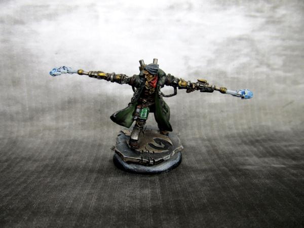 So here's the first model going up in this thread, the Nightmare helljack from Cryx. My girlfriend bought it for my for my birthday back in October, but with the Journeyman League happening at the same time (where I was doing Mercs) I didn't have the time to work on it till now. It, as well as Terminus in the Cryx log, got a resin base the Dark Age line Cool Mini or Not makes. I did replace the resin rebar with brass pins, I didn't see the resin ones lasting very long. Also added the pipes with simple plasticard.