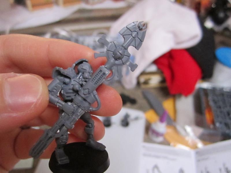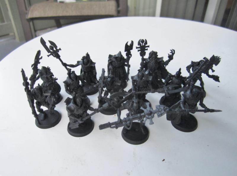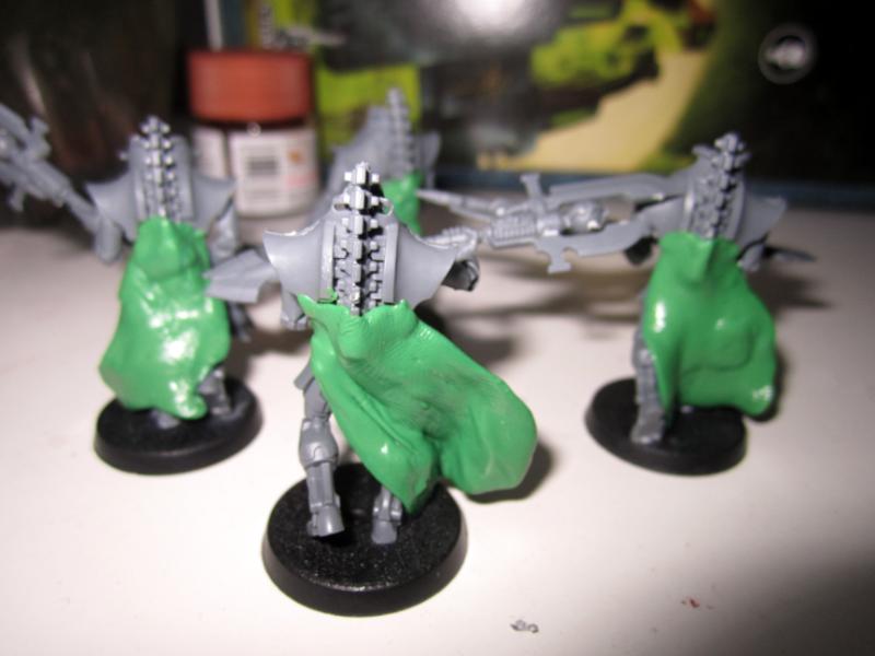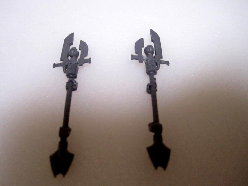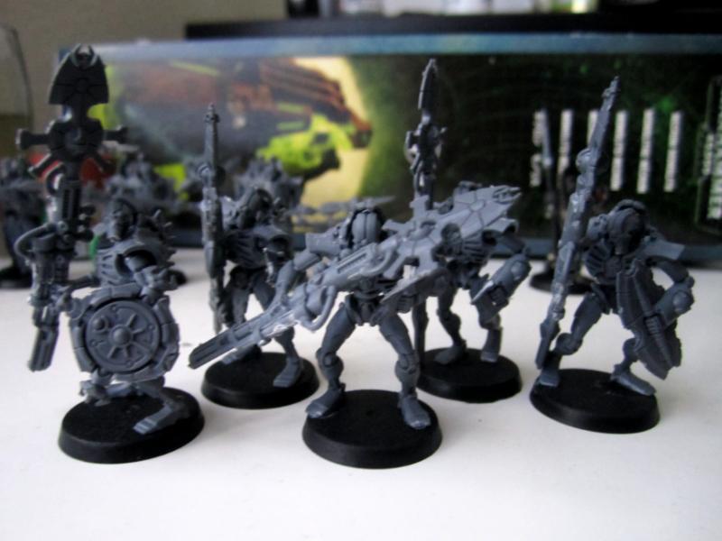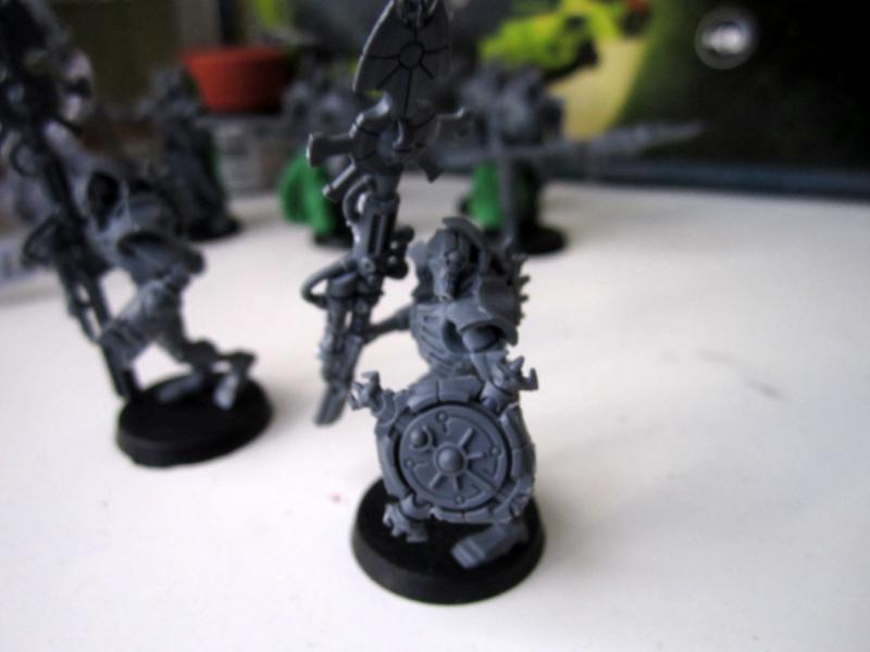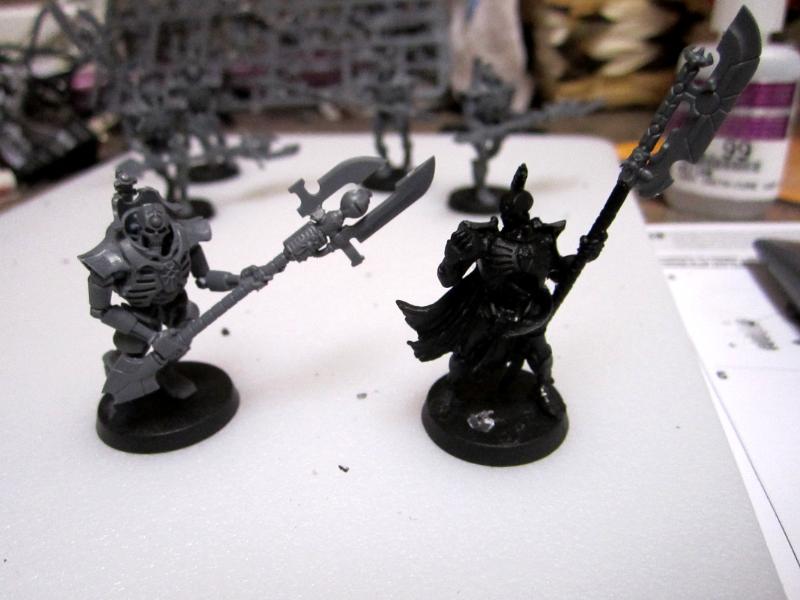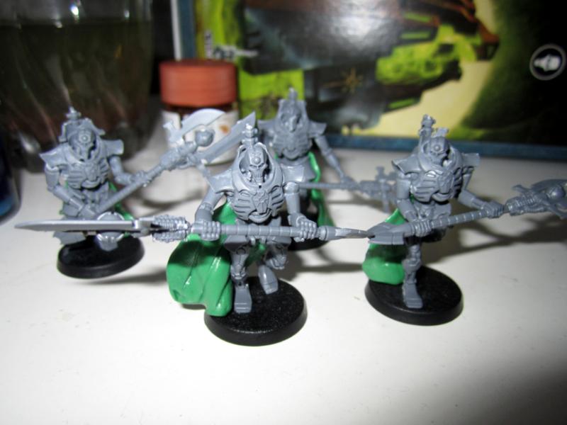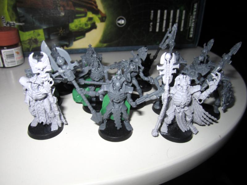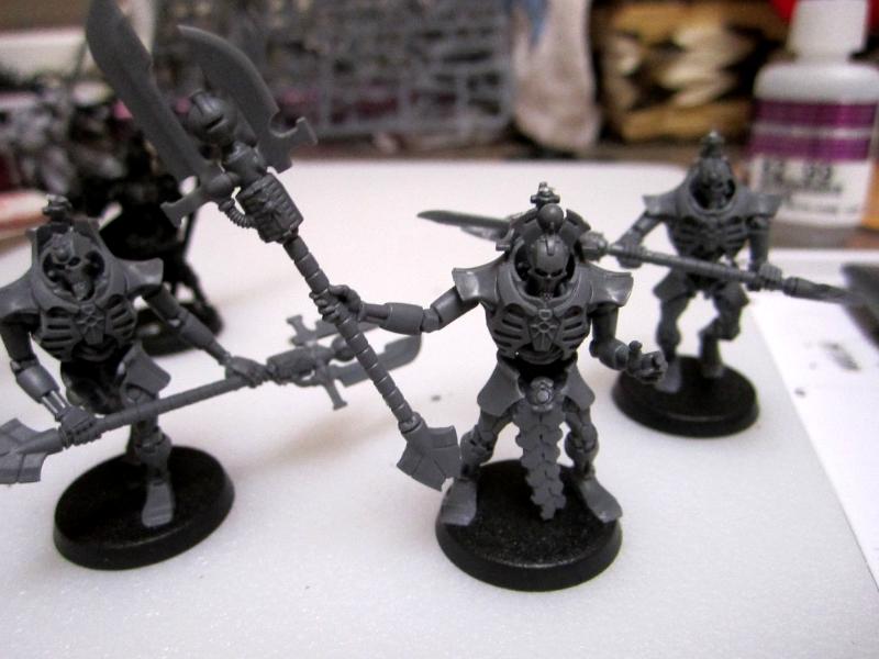 So for the scythes I merely cut the bayonet off the immortals tesla carbines and did a little gluing. I liked the result so I repeated it for all 5.