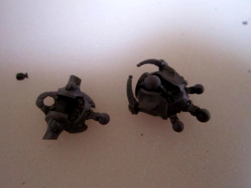 Once again sorry its so dark. So neither of the torsos really matched the layered exoskeletal feel that an actual cryptek model has, but they both had the technological aspect which I liked. I decided to go with the praetorian one originally though and then I ran into my second problem with the kit bashing as shown below...