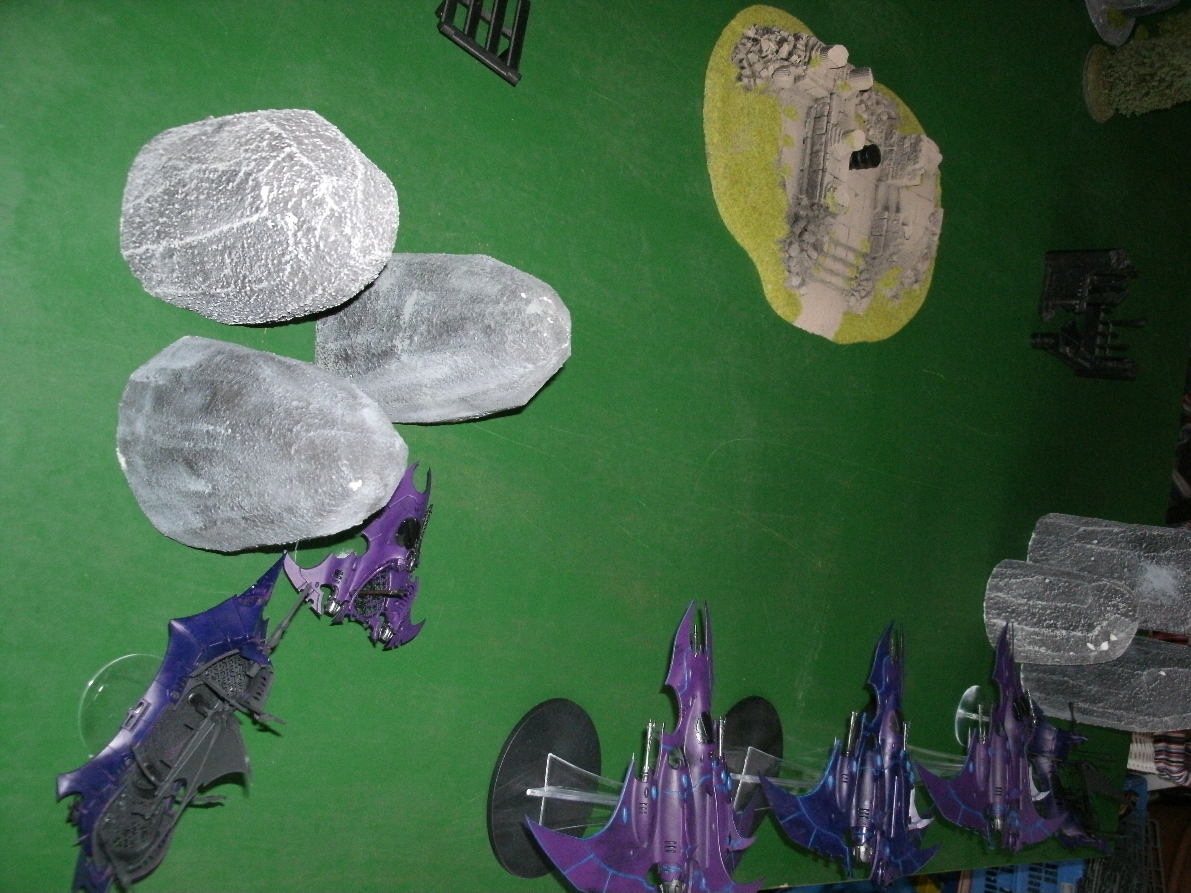 Utilizing terrain is key for DE. But Razorwings with their high stands can hardly find over.