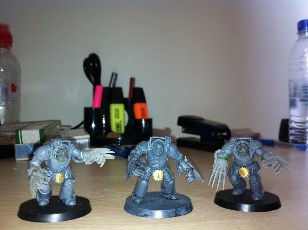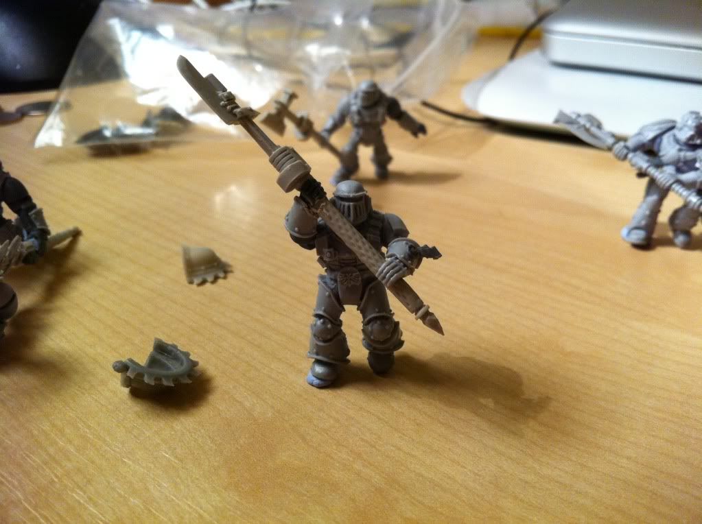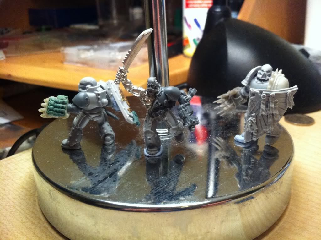 An update. The first two Veteran Vanguards reworked (shortened arms and powerfist) and a third one with extensive bionics. The third one (in the centre) needs quite a lot of work still. Mostly cabling and a separate power source/vials.