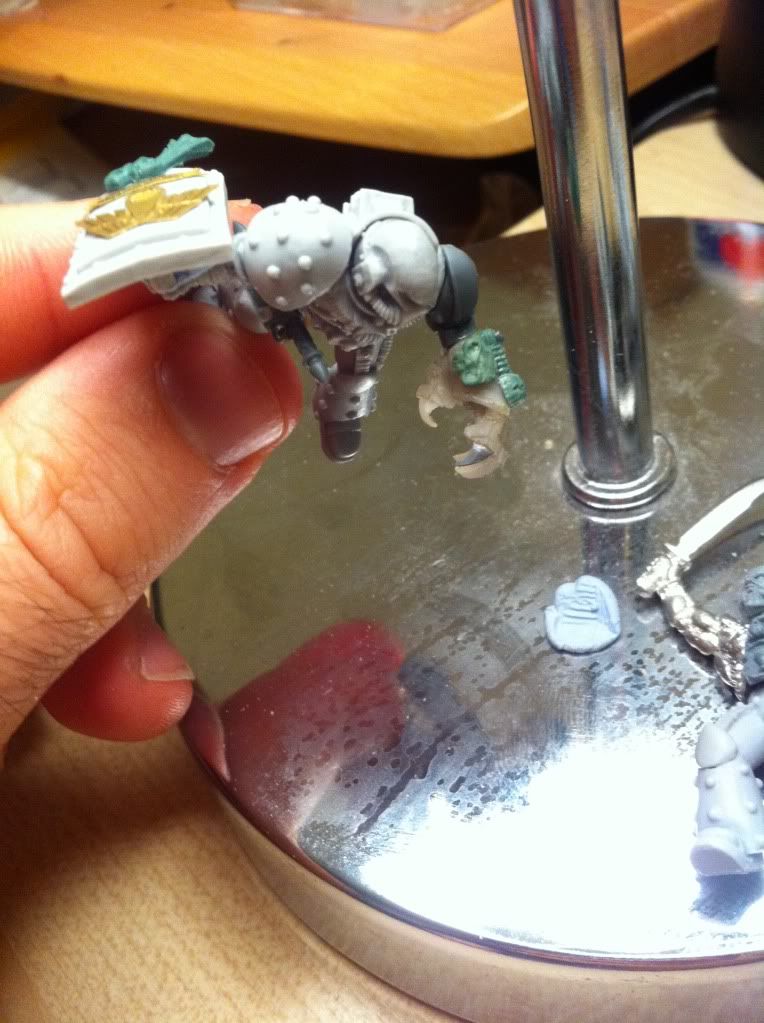 After months of inactivity due to my PhD, I finally found the time tonight to finish my Sanguinary Squad and put together the first two of my Vanguard Veterans. Some bits like shoulderpads, shields etc are not yet attached on the models to allow an easier painting. As for the Jumppacks, they will all have the Mark II jumppacks from FW.