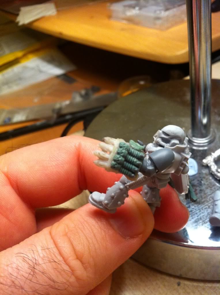 I like the look of them. But the fist is to large going over the arm. But I see you working on it so it will look great once done. I like the one guy painted !