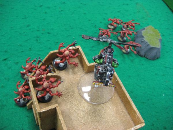 My last remaining kan that can do anything moves towards his kans, whiffs his big shoota, and is too far to assault.