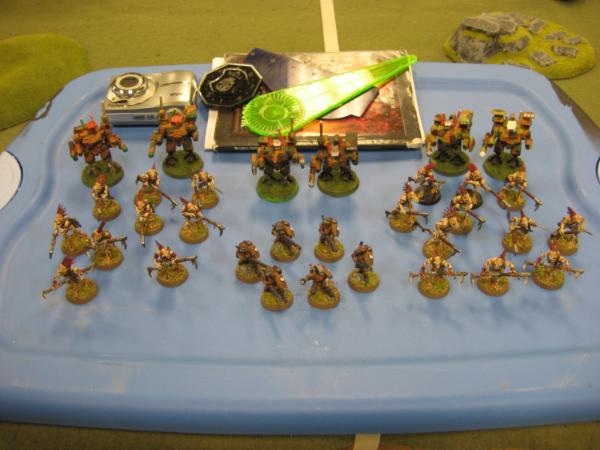 Second game was against Eric running 3 units of 2 crisis suits with missile pods and flamers, 6 Fire Warriors, and 2 units of 10 kroot.