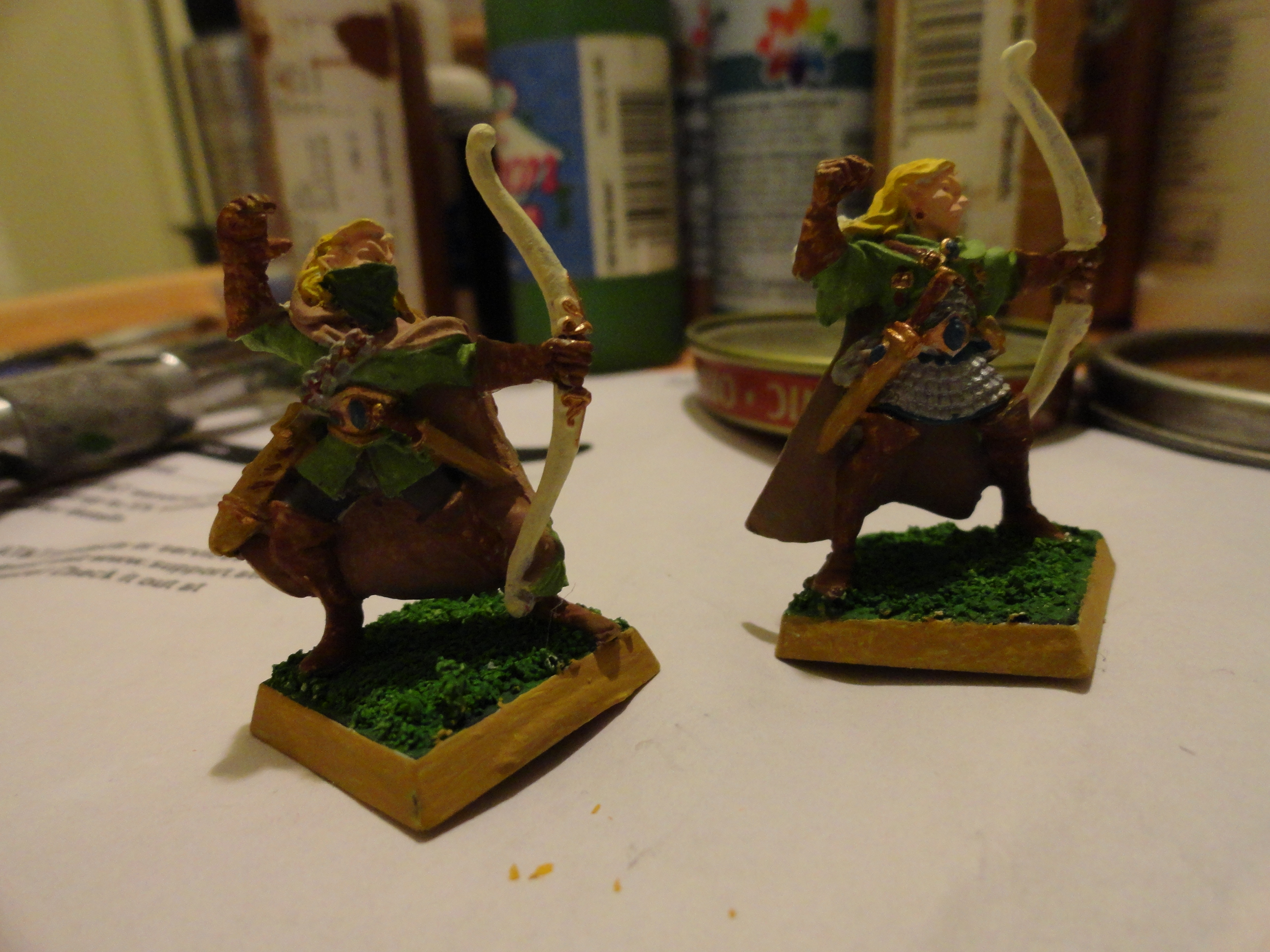 As I mentioned before, you can also glue it to the base and it will absorb slightly watered down paint so well that you never even have to get the brush up next to the miniature. These (please excuse the unfinished state) shows it glued down and painted as grass.