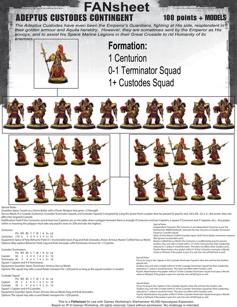 Subject: I have a chance to get a 1500 pt Adeptus Custodes army...What are your thoughts?