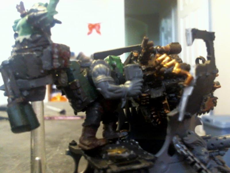 So I have been cool-a-fying my three ork HQ choices power klaw boss, A Kff Big Mek, and da shoota boss. well I wanted to give the shoota boss a BIG SHOOTA. So I started adding things to that warboss's shoota...
