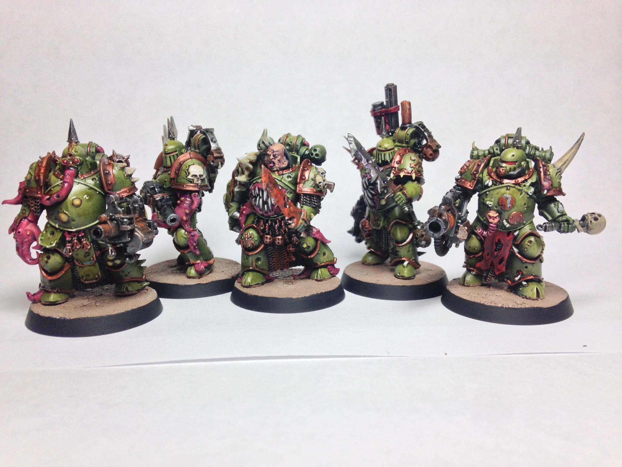 Early WIP of the next Deathguard squad. Going to outfit them with 2 blight launchers, 2 bolters and the champion with powerfist, plaguesword and plasma gun. They will be a midfield squad to support poxwalkers and hold objectives.