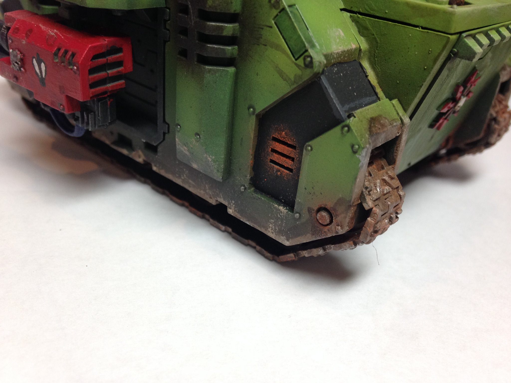 All right I got off my @$$ and decided to add some chipping, scratches and a bit more rust. Tracks also looked a bit to clean, more rust and agrellan earth to the rescue. Thanks all for the encouragement, hopefully it has lost that “just driven off the lot look”.