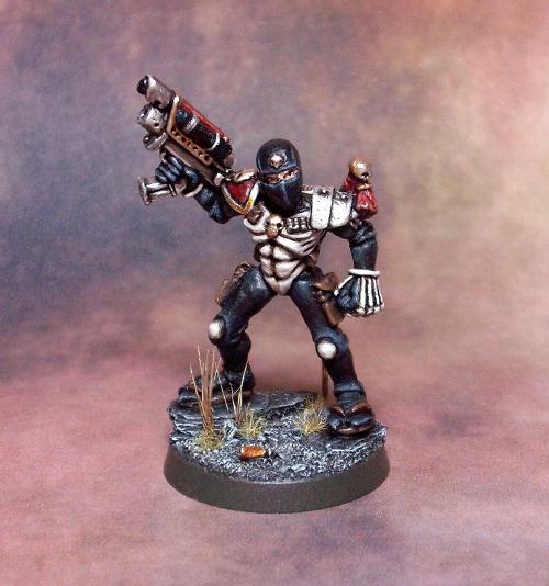 I saw one of those on my buddy's desk last night and had to ask him what it was. He's been playing since rogue trader and has lots of nifty stuff. That guy looks like Snake Eyes from G.I.Joe to me, and that makes him awesome!