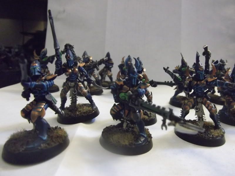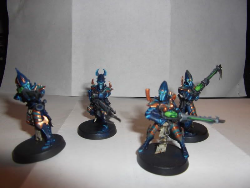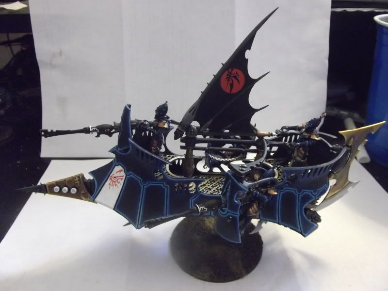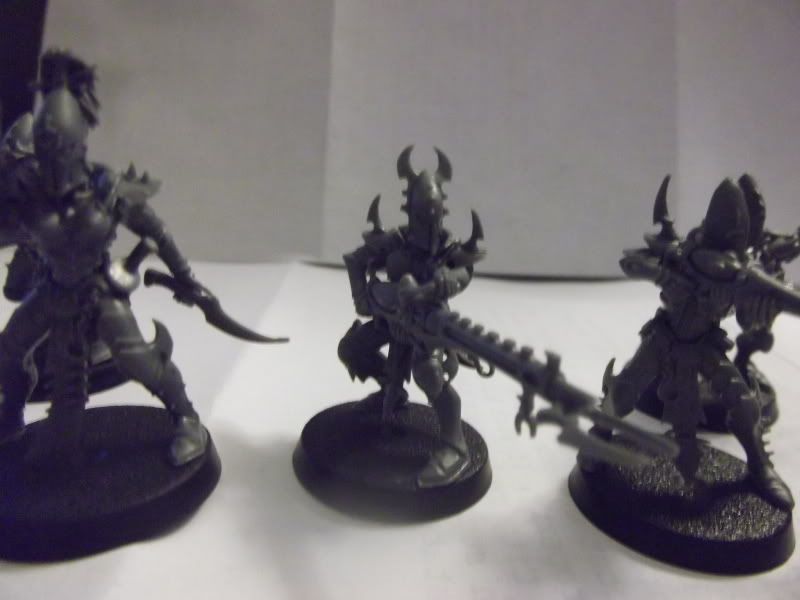 Hey guys. Been a while since I posted on this. But I've made a good amount of progress! My little Dark Eldar force has grown a bit and is soon to grow a bit more. I've gotten a Ravager and Venom done, and have 20 warriors finished up. I converted an Archon out and a Haemonculous out of extra parts, and figured out and completed a prototype for my Incubi conversions. I've also got a Beastmaster unit in the works which i didn't take pictures of. I've used old metal ripper swarms as razorwings and vampire counts zombie wolves as khymaera. I plan to claim they're captured and zombified fenrisian wolves, of course just to anger space wolves players. Anyways, pictures!