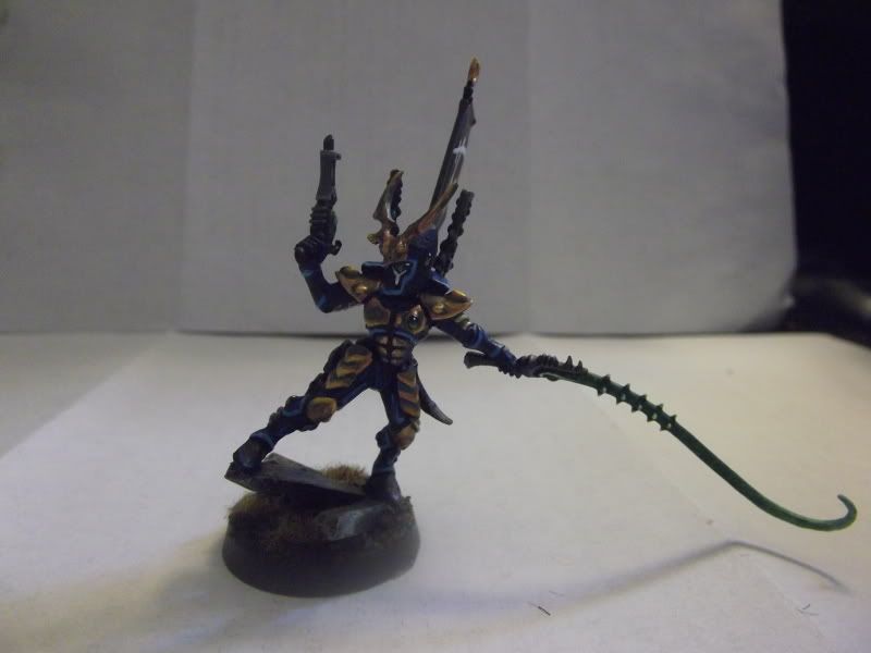 And here's the Dracon. I love that curvy mean looking sword and the Dire Avenger-esk helmet crest. I gave him that spiky trophy rack and sliced up the phantasm grenade launcher to fit along side it. I'm not sure I'll use that often, but it bulks out the model really nicely.